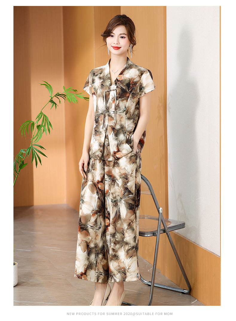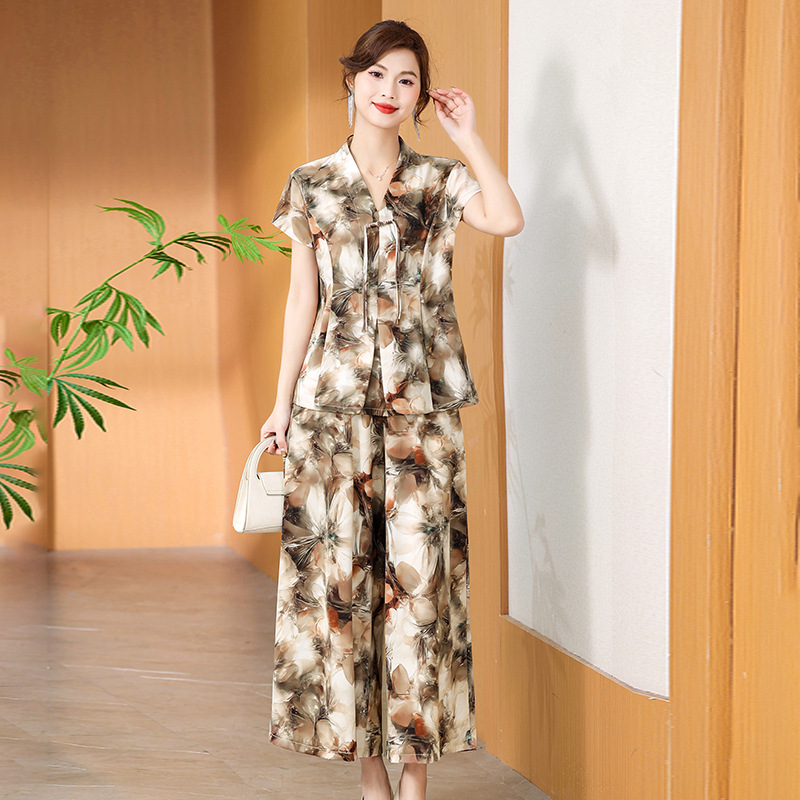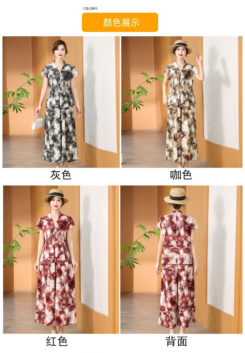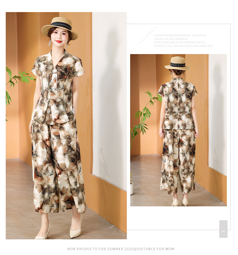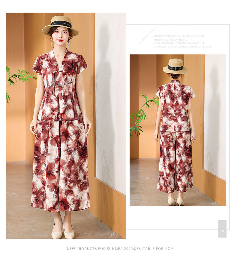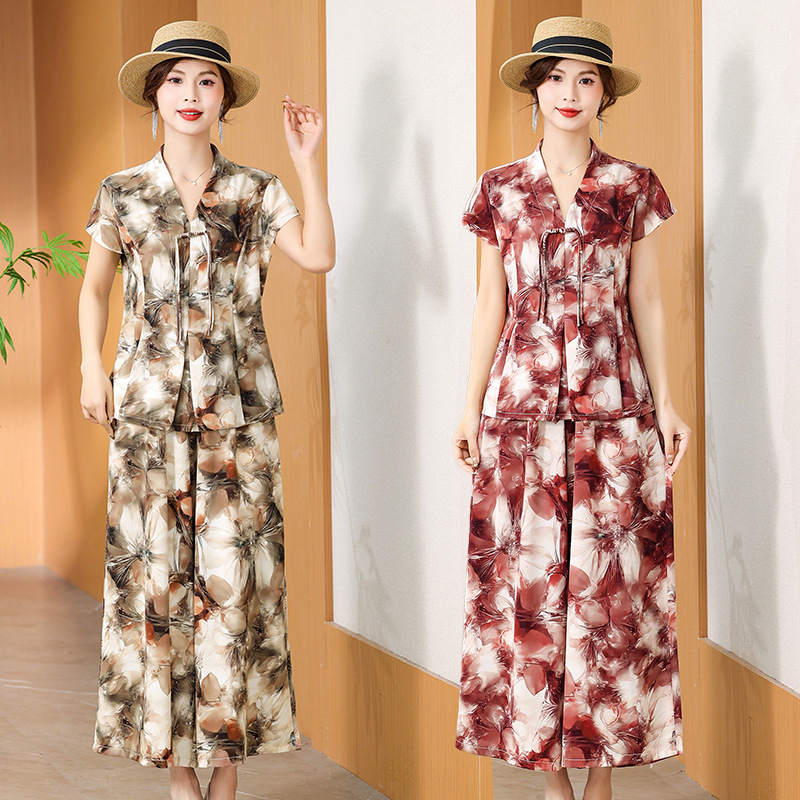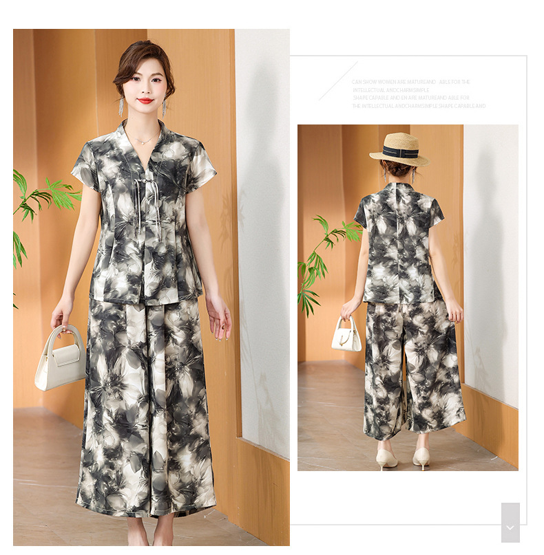 Летний костюм для мамы с короткими рукавами 2025, новая мода для женщин среднего и старшего возраста: футболка с короткими рукавами и широкие брюки, комплект из двух предметов