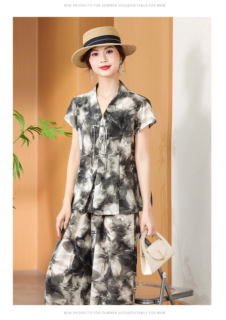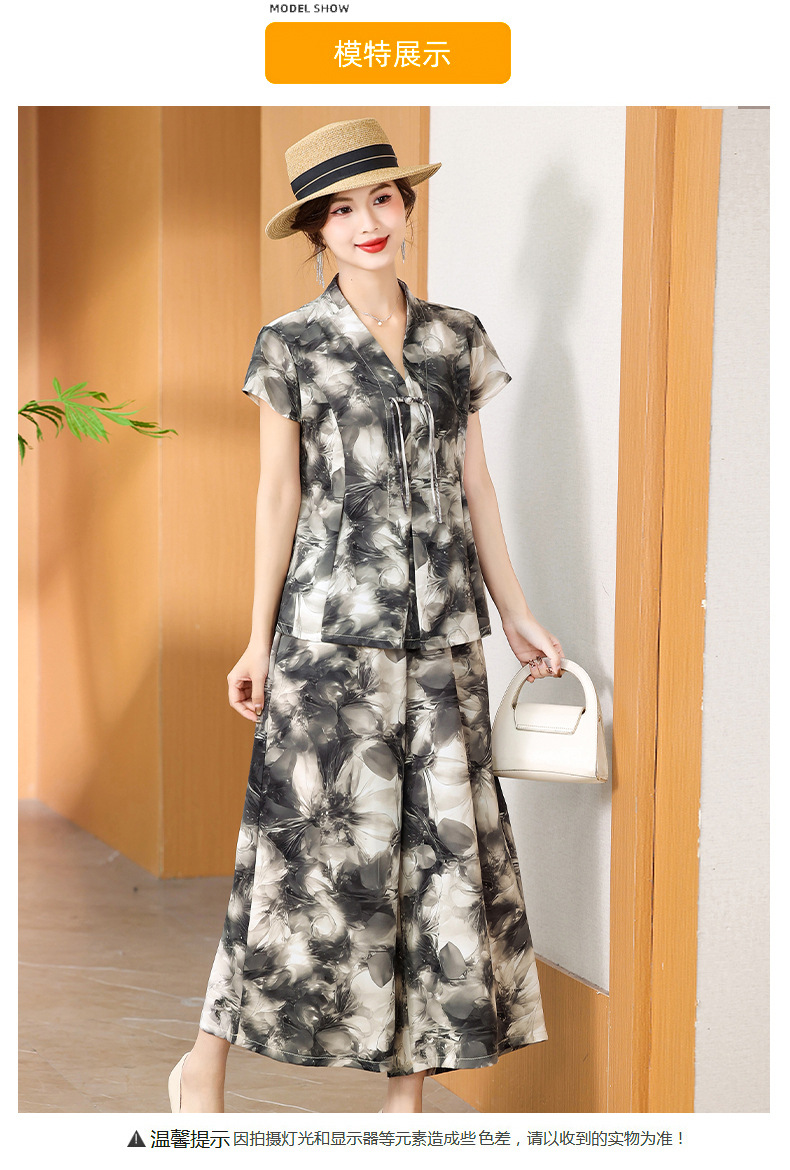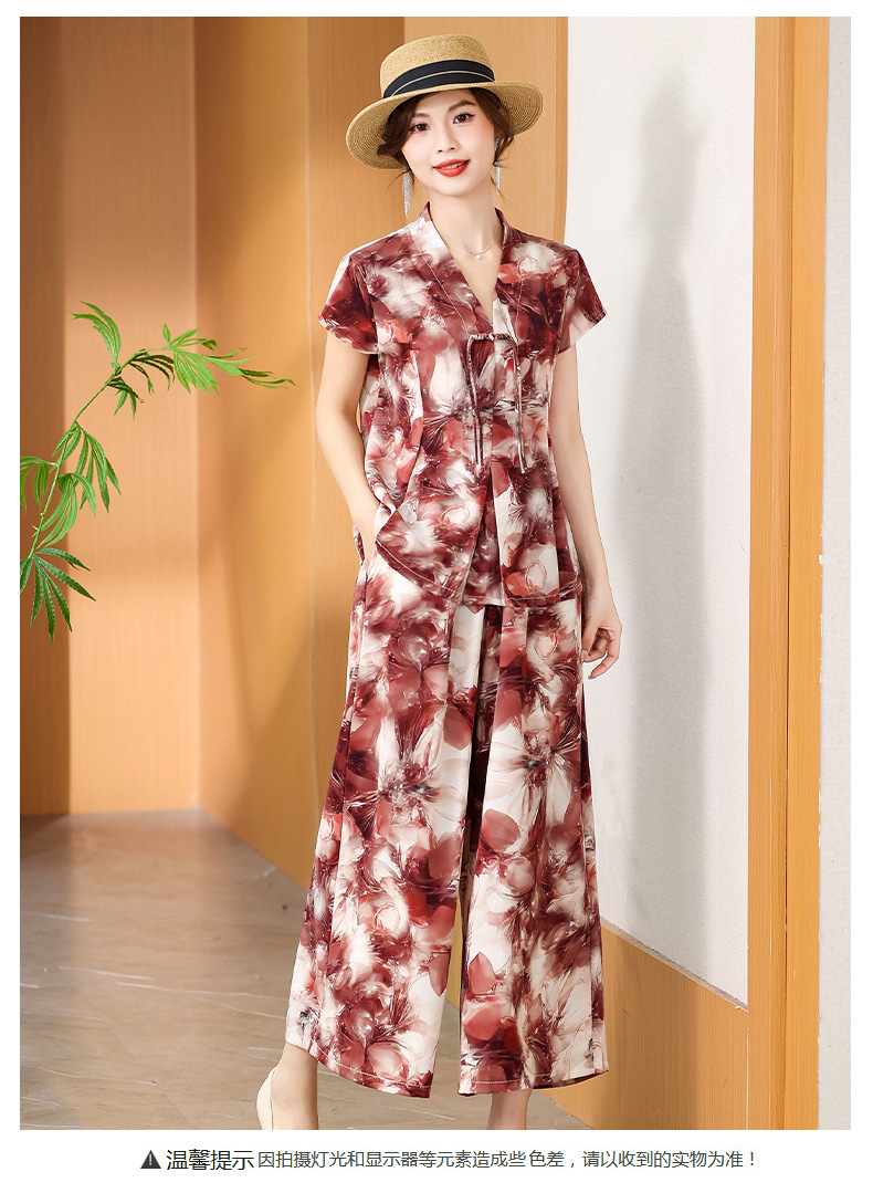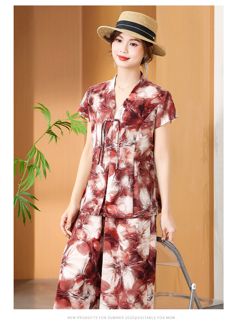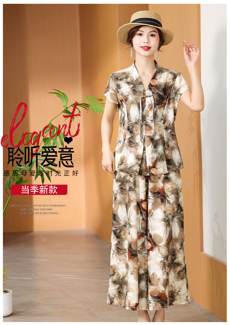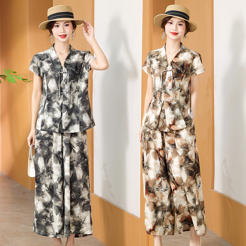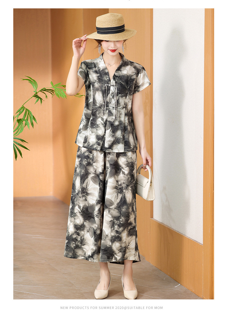 Летний костюм для мамы с короткими рукавами 2025, новая мода для женщин среднего и старшего возраста: футболка с короткими рукавами и широкие брюки, комплект из двух предметов
