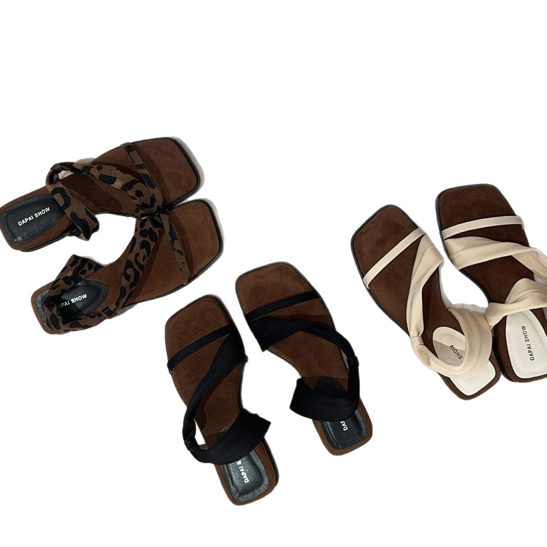 Женские летние босоножки на толстой платформе с высоким каблуком-танкеткой и одной ремешком, пляжная новинка 2025 года