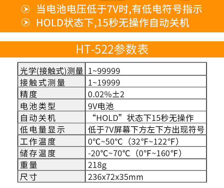 Фотоэлектрический контактный тахометр «два в одном» HT-522