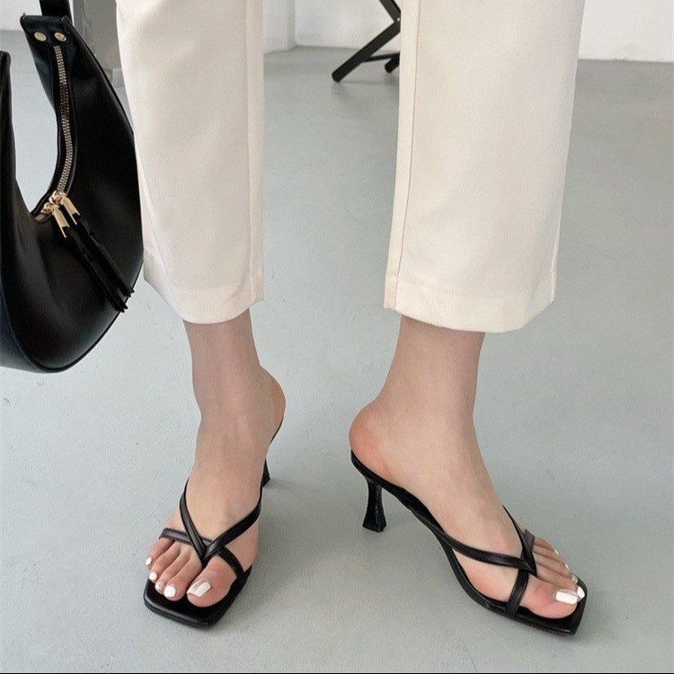 2025 новых летних французских босоножек-шлепанцев на шпильке, женские летние босоножки, квадратные босоножки на высоком каблуке