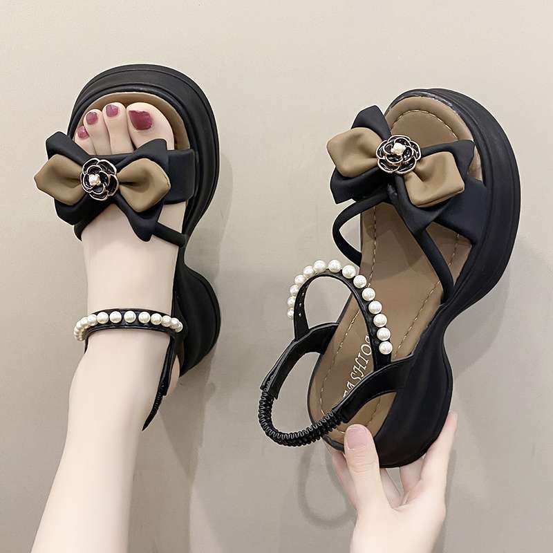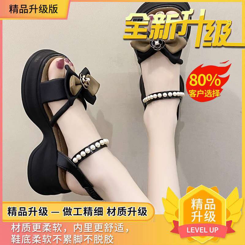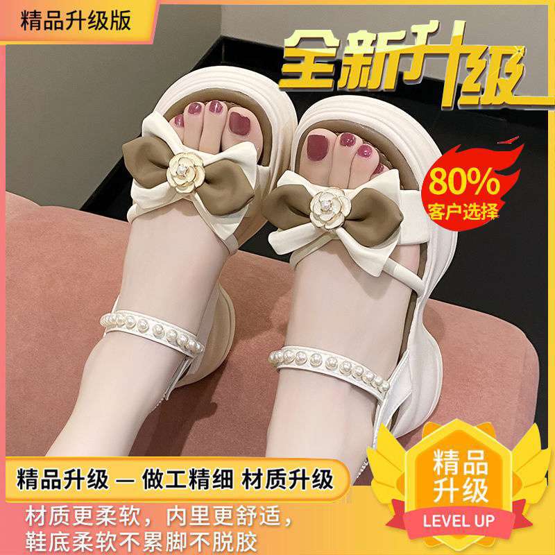 Женские летние сандалии 2025 года, новая модель, изысканные и удобные, с бантом, подходят к юбке, для работы, на толстой подошве, римские, для путешествий.