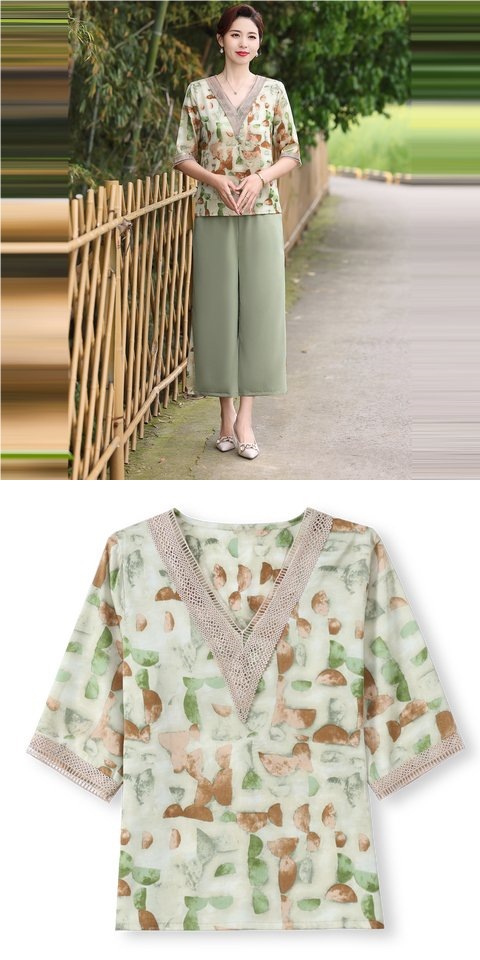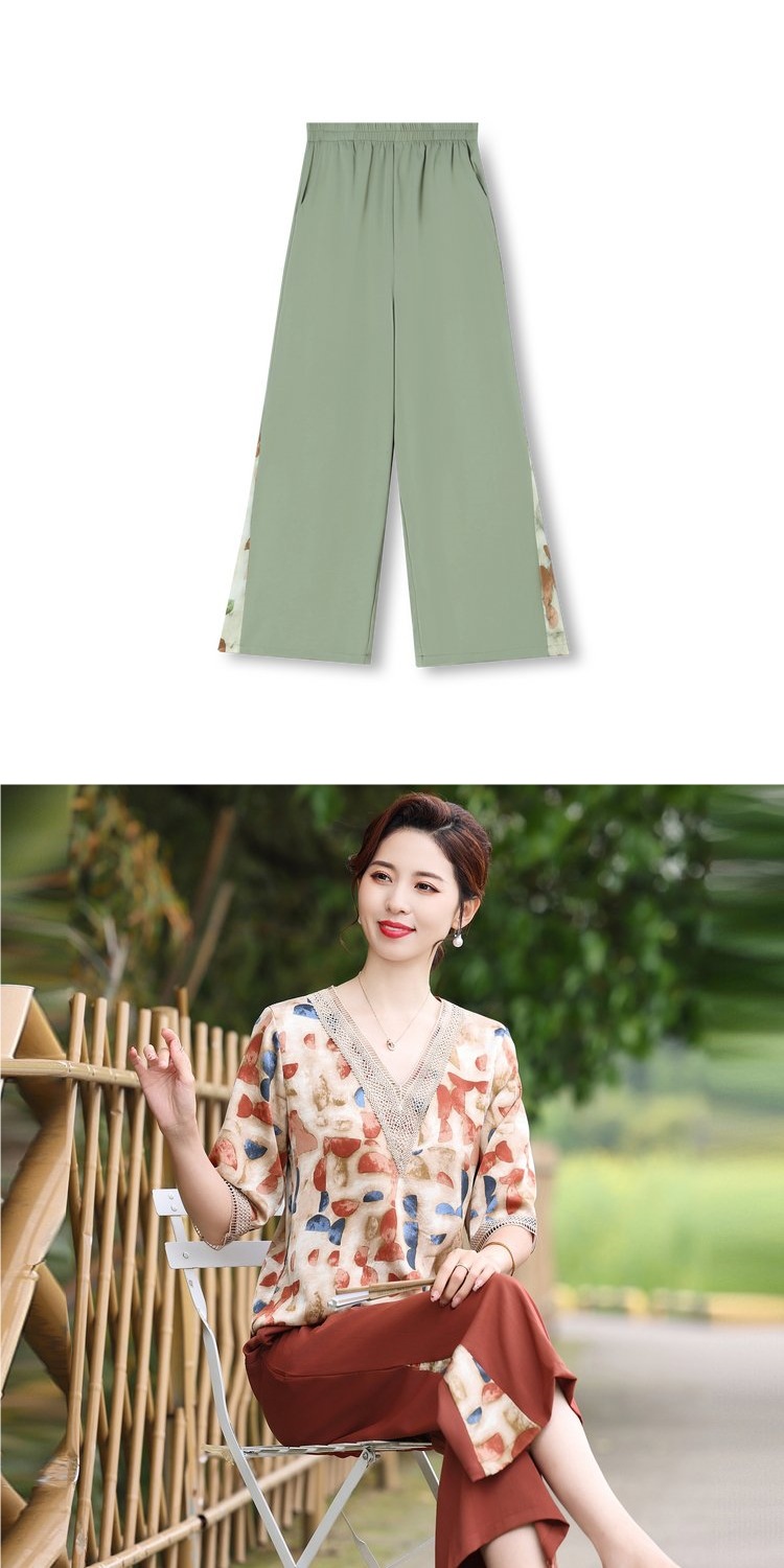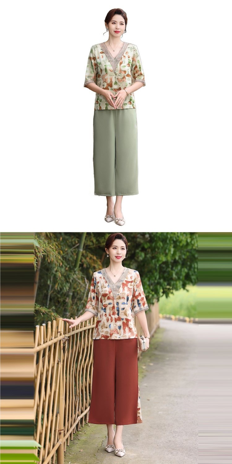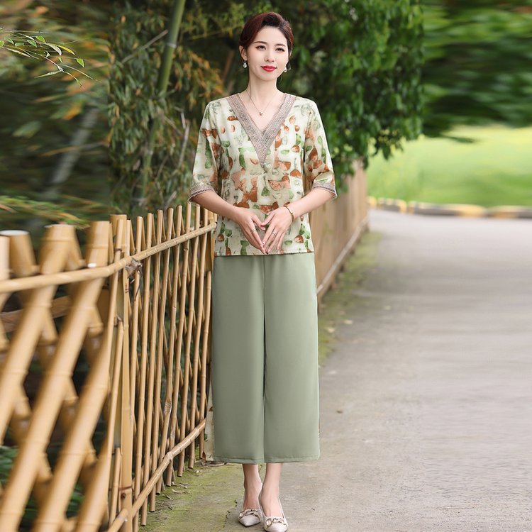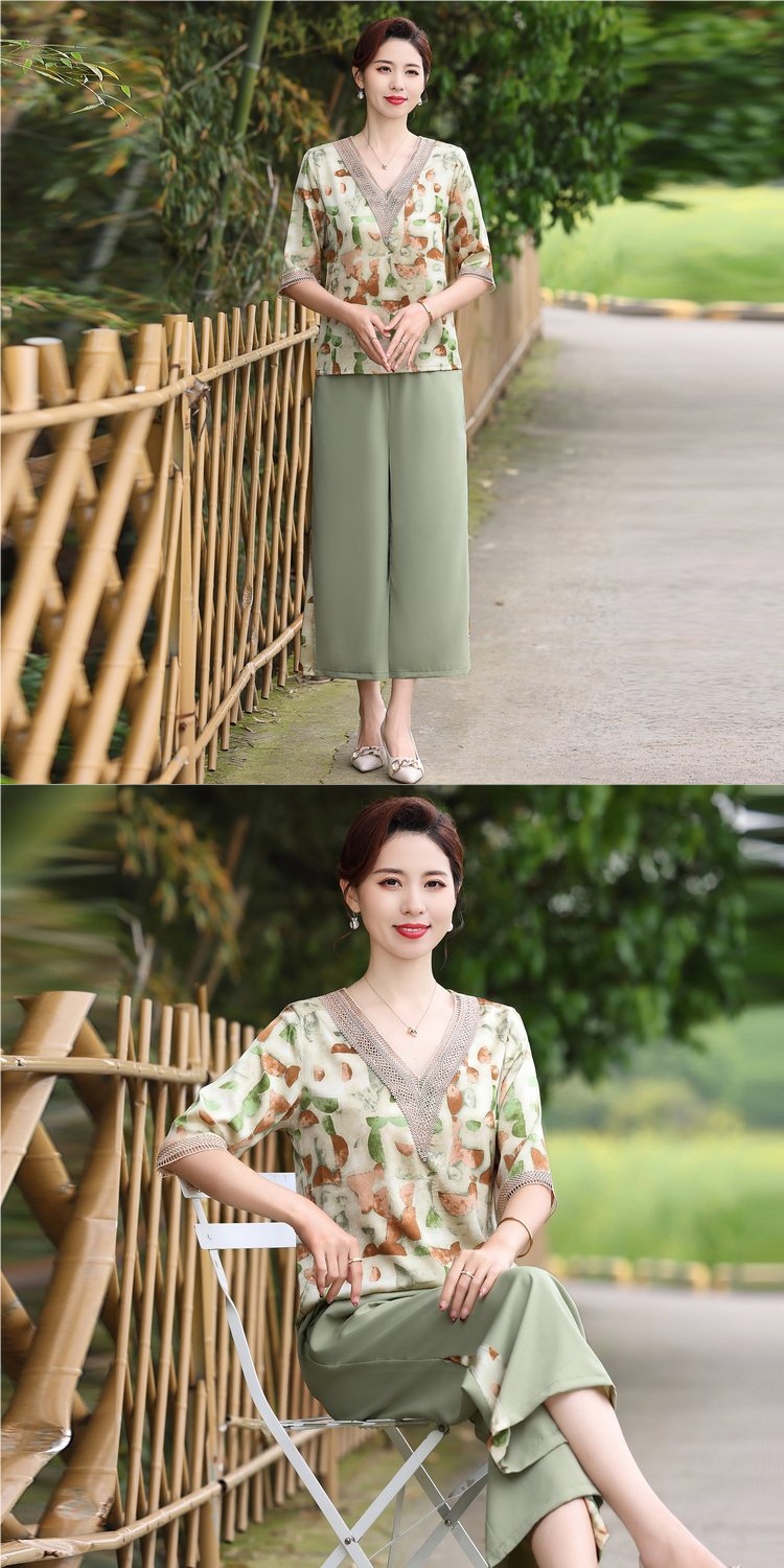 Модный шифоновый топ-костюм для мамы, уменьшающий возраст, новинка 2025 года, модный комплект из двух предметов для женщин среднего и пожилого возраста
