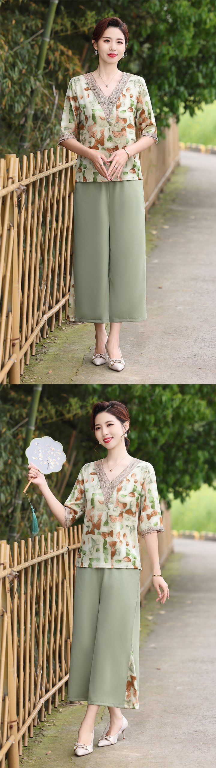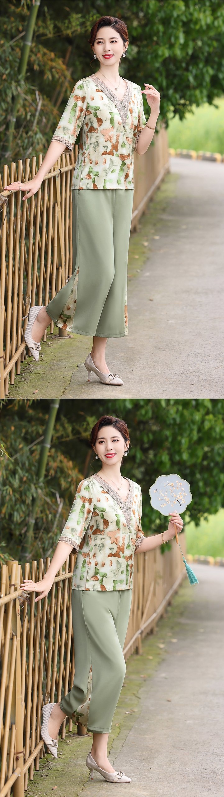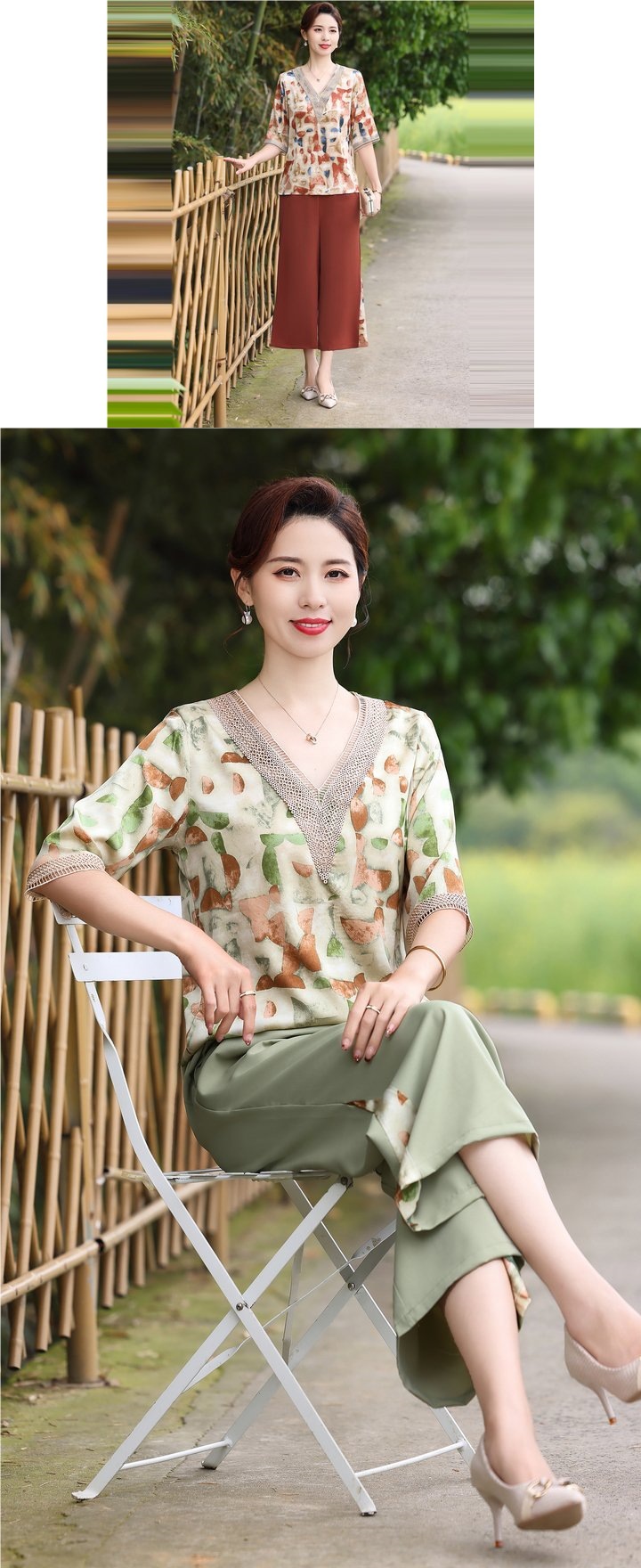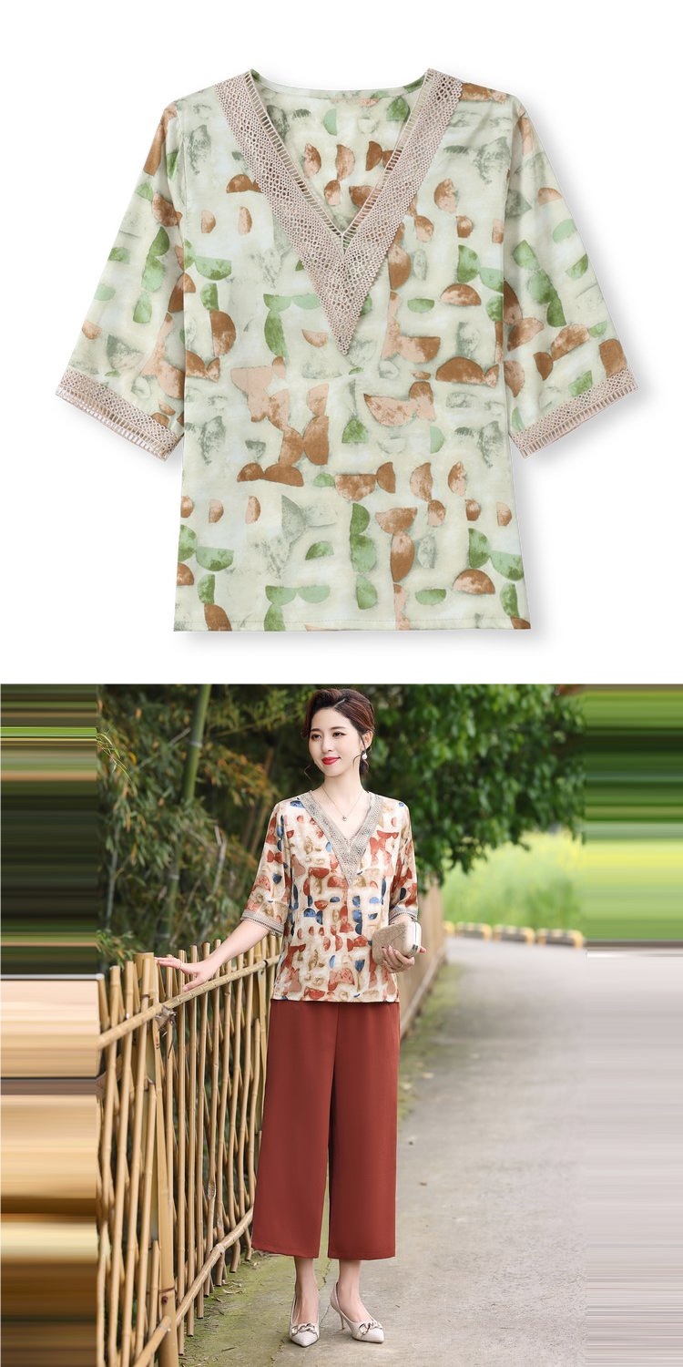 Модный шифоновый топ-костюм для мамы, уменьшающий возраст, новинка 2025 года, модный комплект из двух предметов для женщин среднего и пожилого возраста