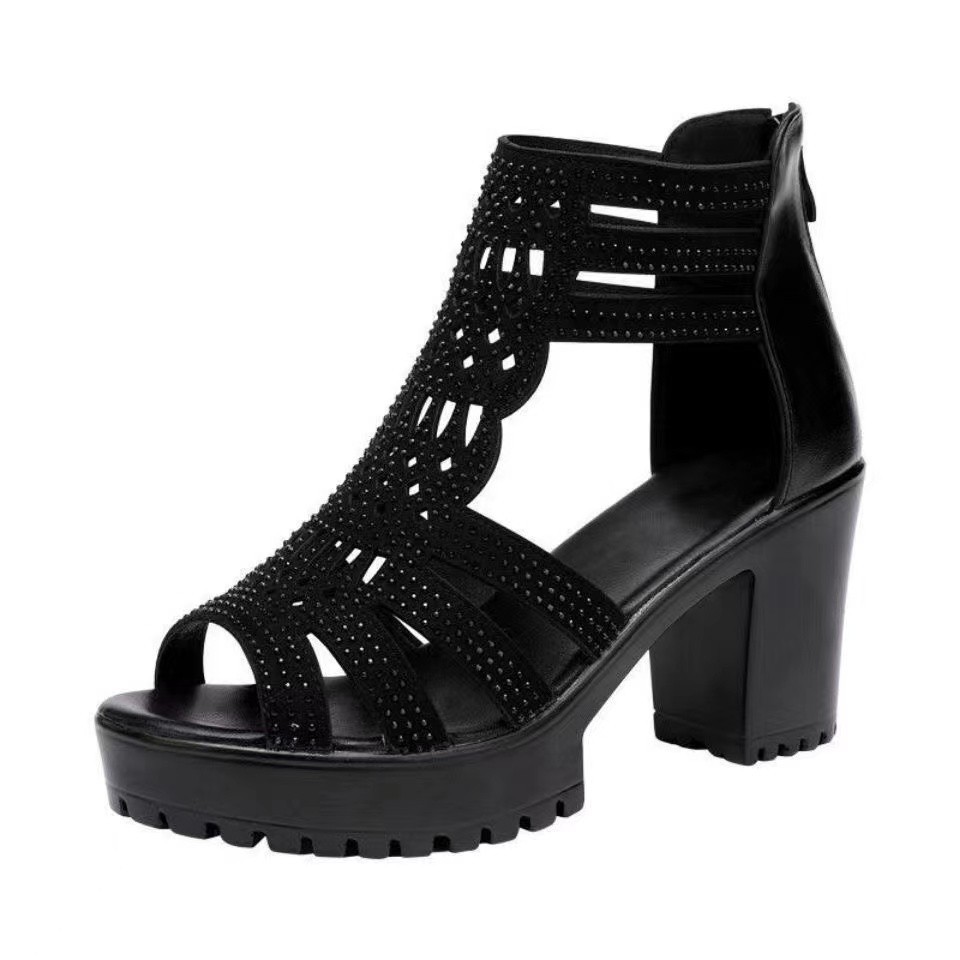 Женские сандалии на толстом каблуке, новинка 2025 года, нескользящие римские женские туфли на среднем высоком каблуке с рыбьим ртом, женские сандалии на мягкой подошве с открытым носком, увеличивающие рост