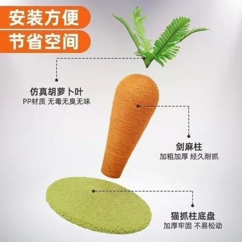 тыква-труба; большая морковь; Сменная тканевая опорная пластина (за исключением редиса); Бамбуковая стойка с кошачьим когтем; Маленький оранжевый котячий мячик для когтеточки; Большой оранжевый мяч для когтеточки для кошек