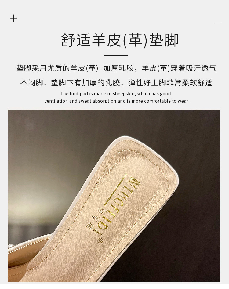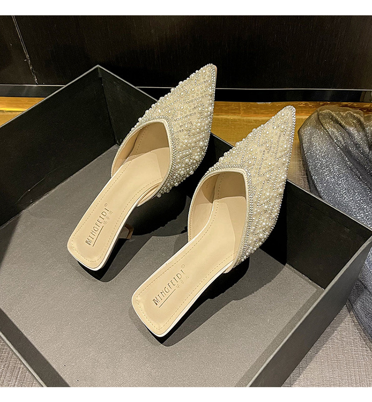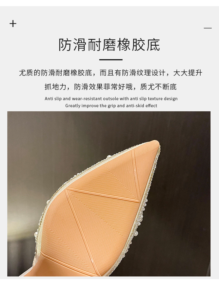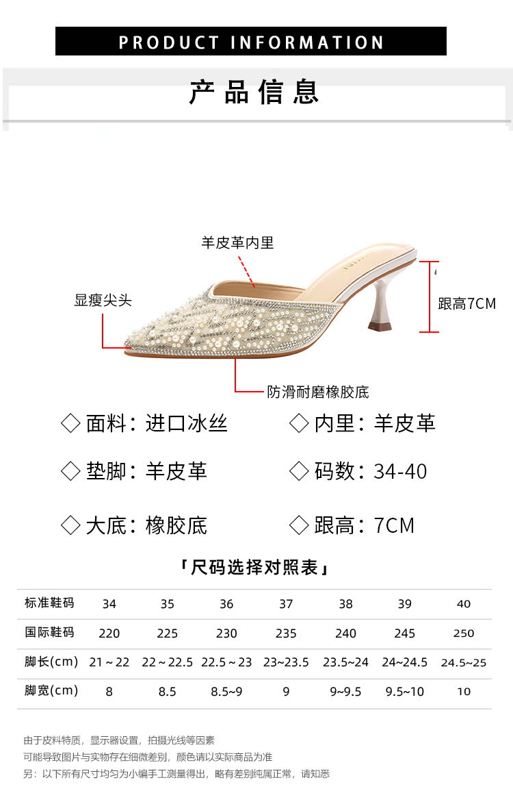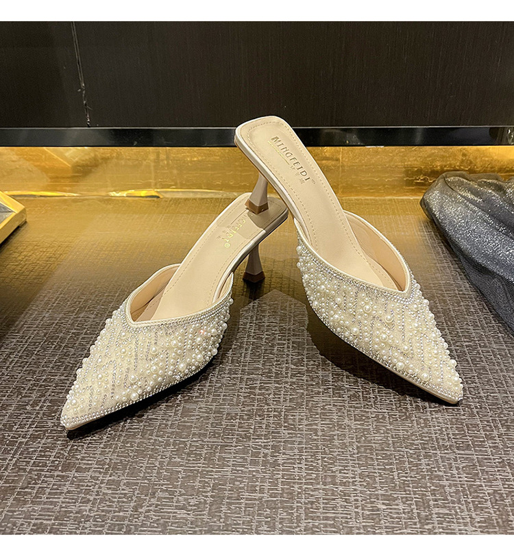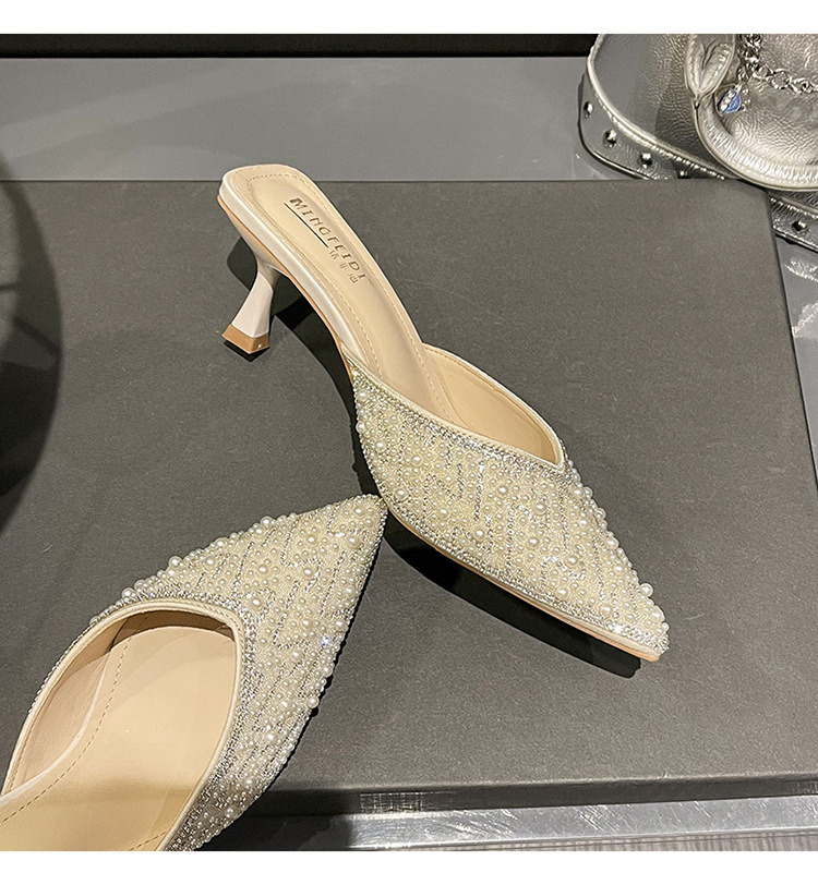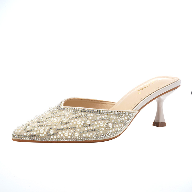 2025 новый летний сетчатый красный стразы полутапочки Баотоу холодные тапочки на высоком каблуке женские модные каблуки