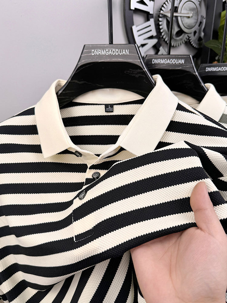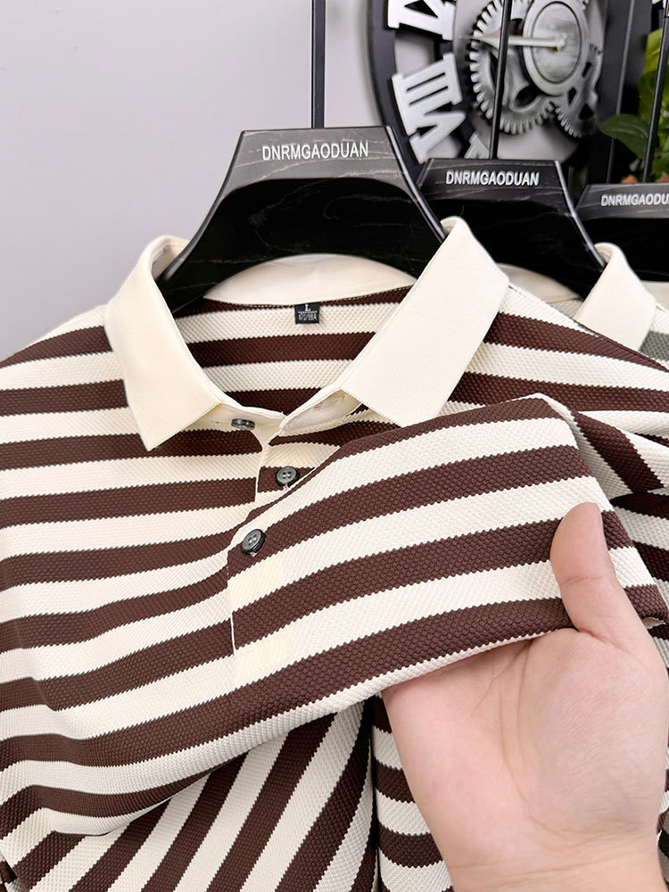 Летняя доступная роскошная рубашка-поло с короткими рукавами и рисунком ананаса, мужская свободная дышащая футболка с полосатыми лацканами и половиной рукавов, мужской топ