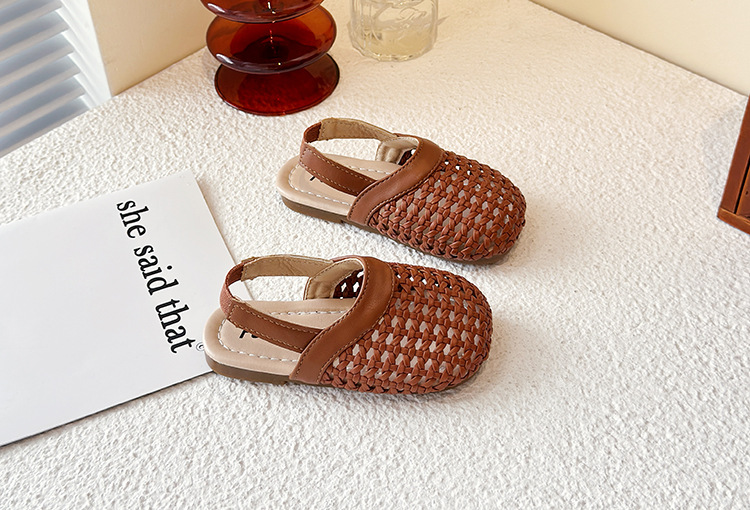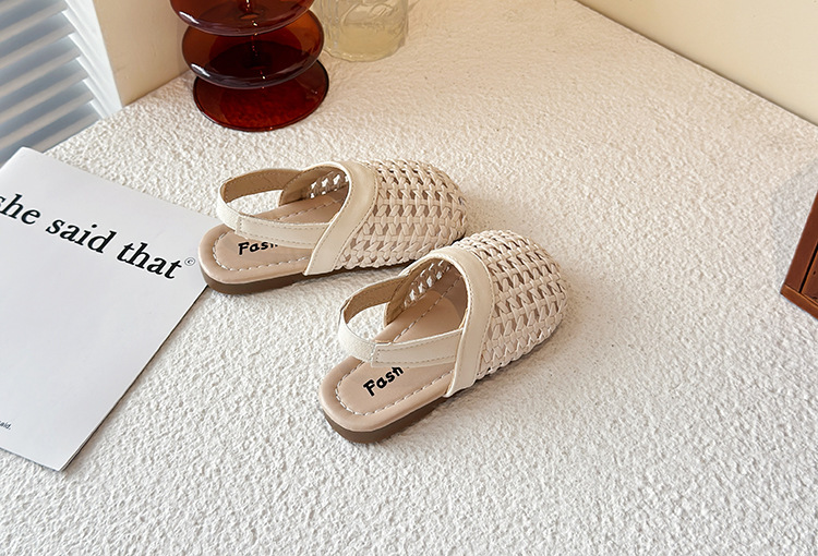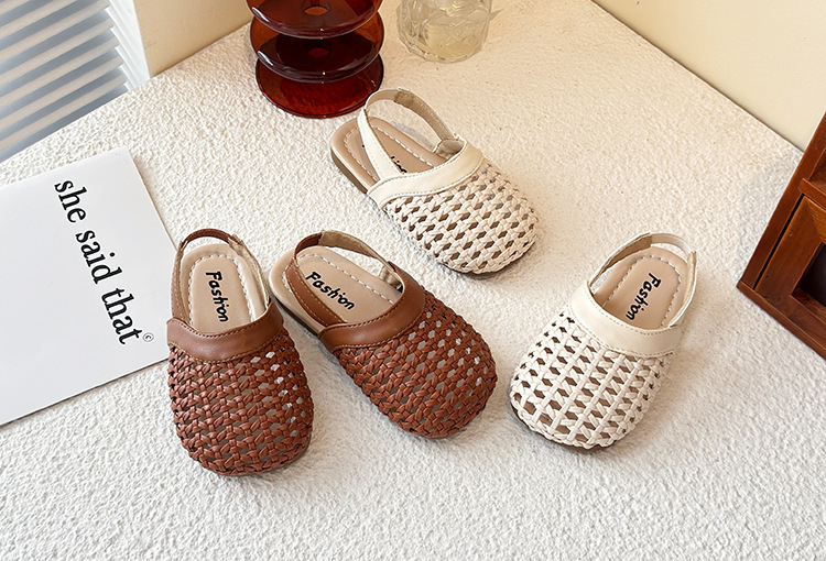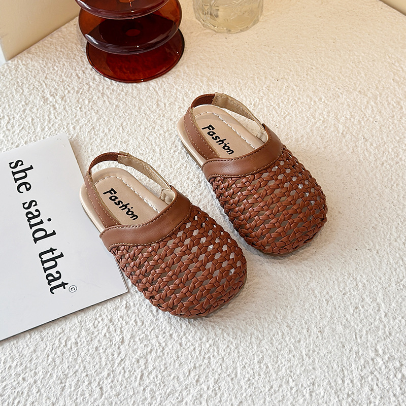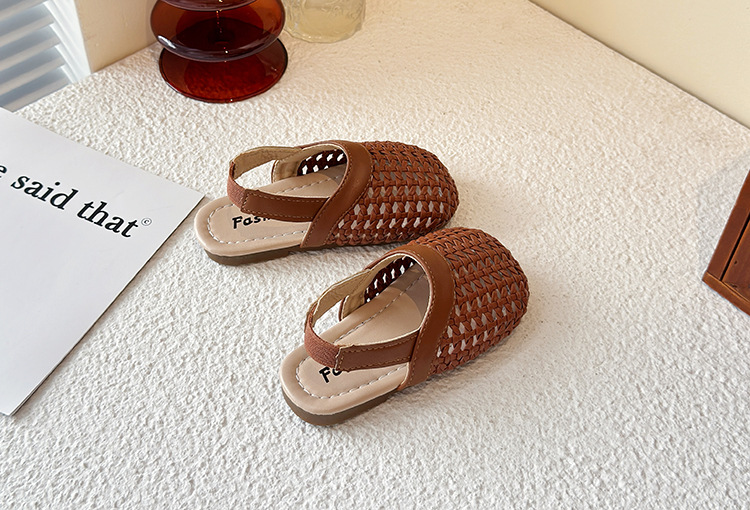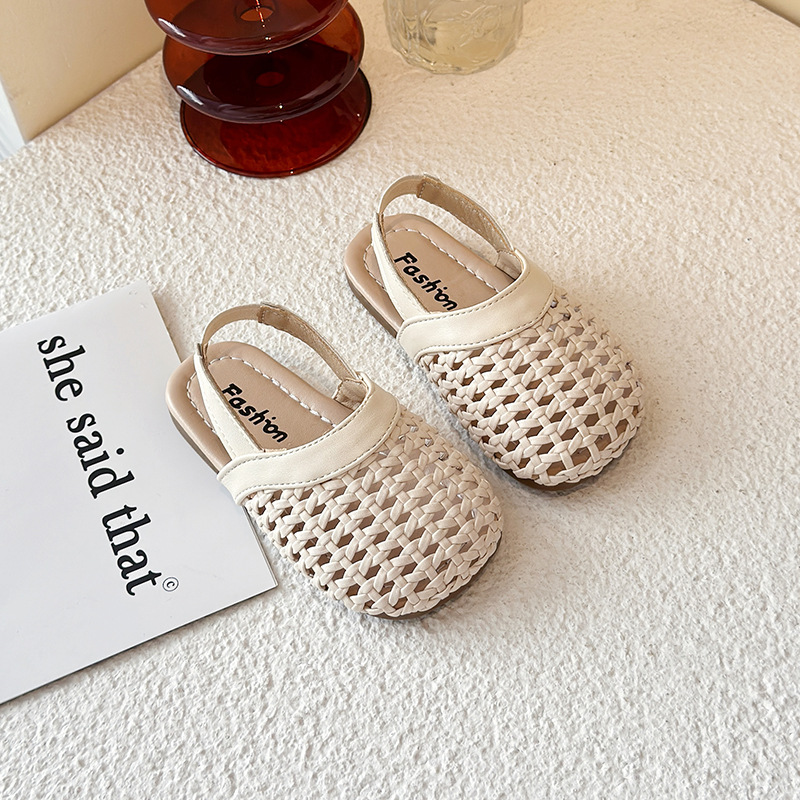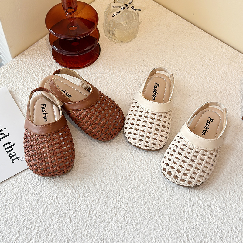 Трансграничные сандалии для девочек 2025 новый летний мягкий фон тканые булочки для малышей корейские сандалии для девочек пляжные туфли