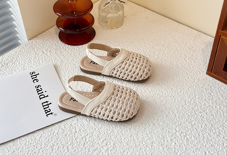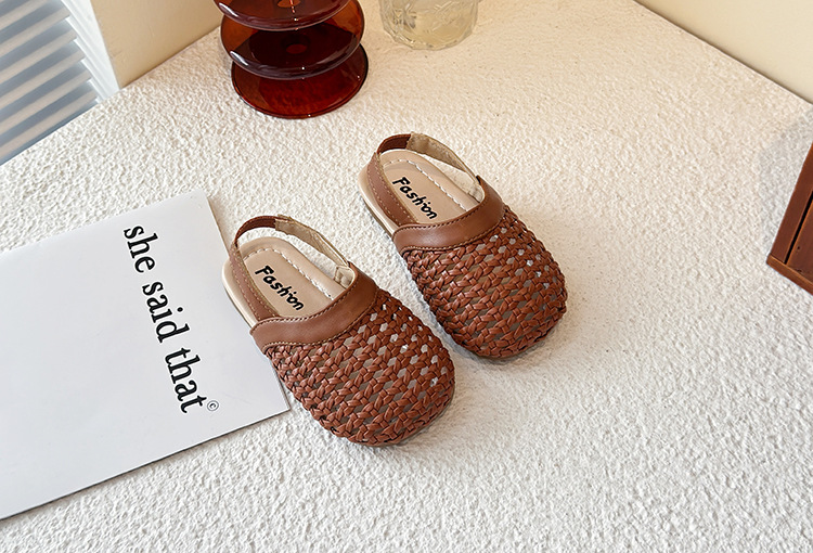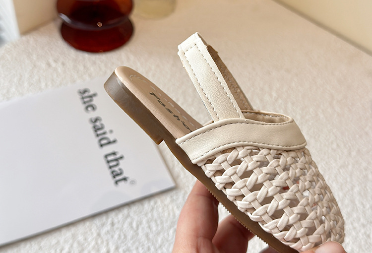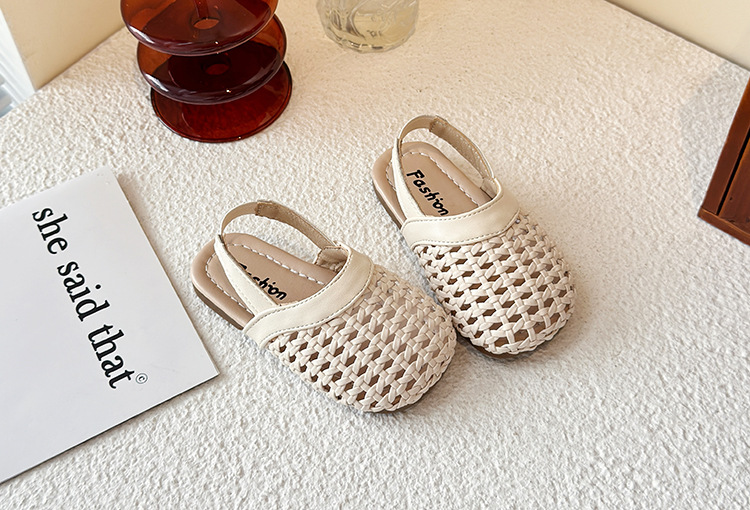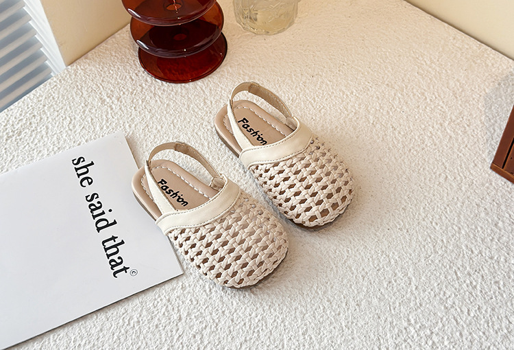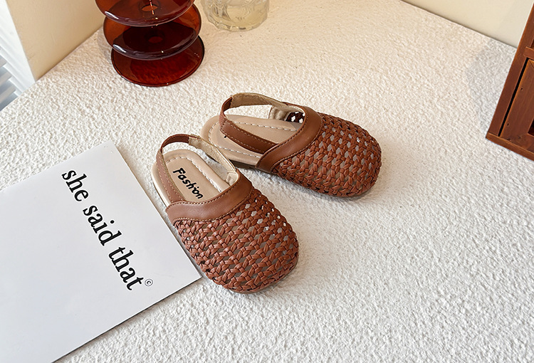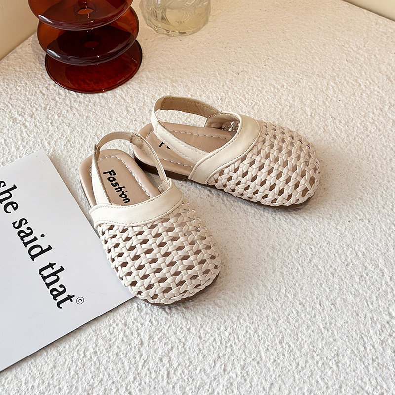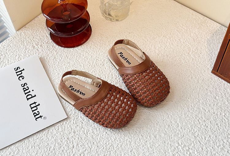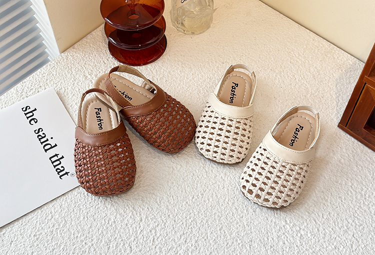 Трансграничные сандалии для девочек 2025 новый летний мягкий фон тканые булочки для малышей корейские сандалии для девочек пляжные туфли