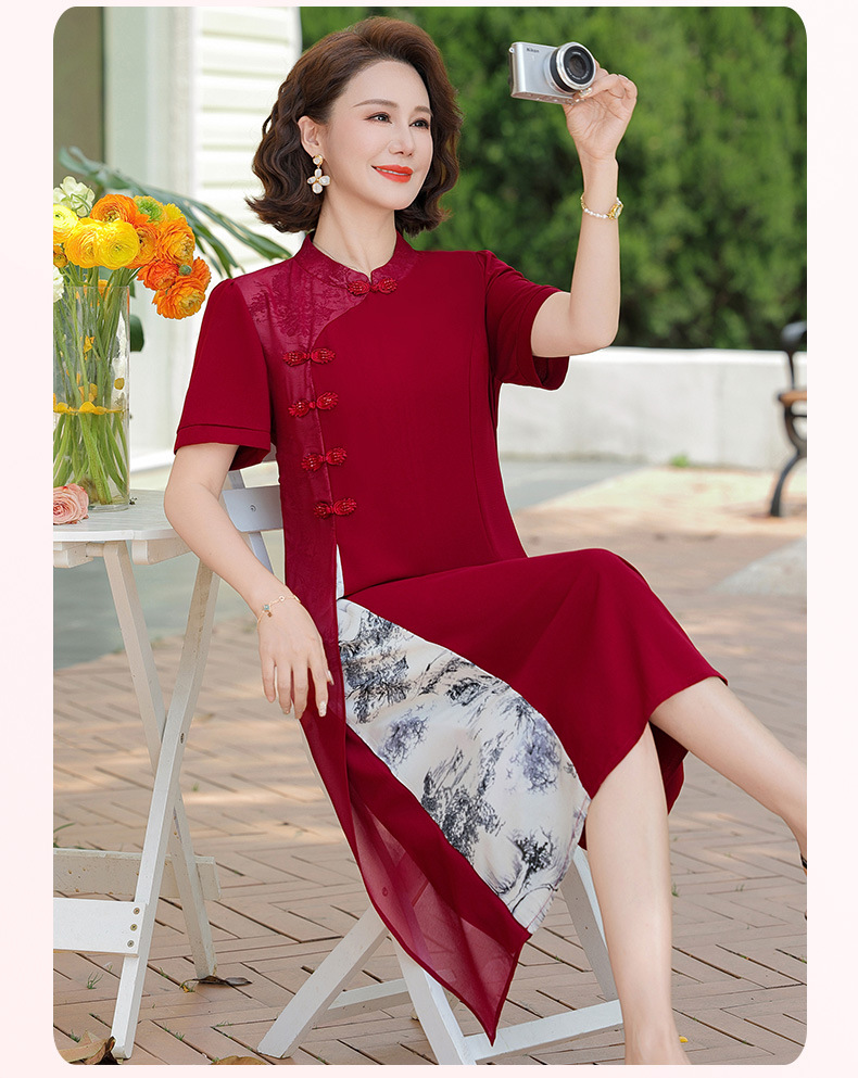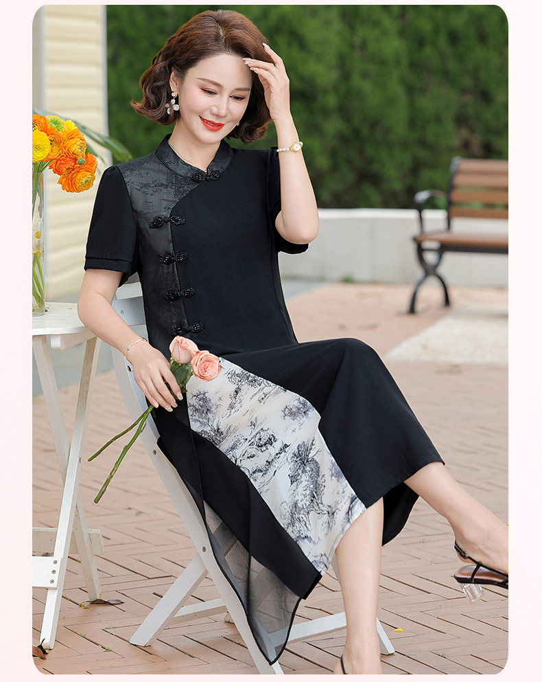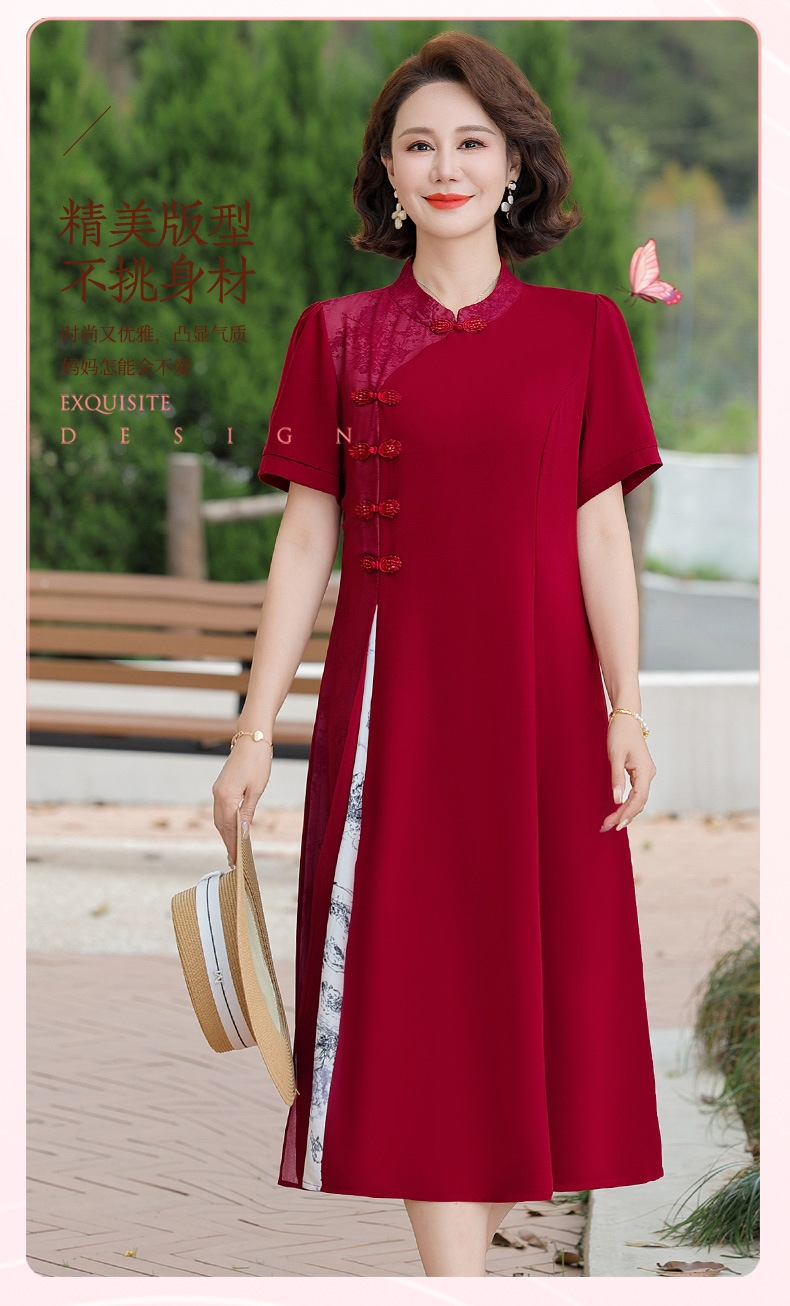 Мама летнее китайское платье в стиле чонсам 40 лет 50 лет среднего и пожилого женского темперамента юбка с длинной талией
