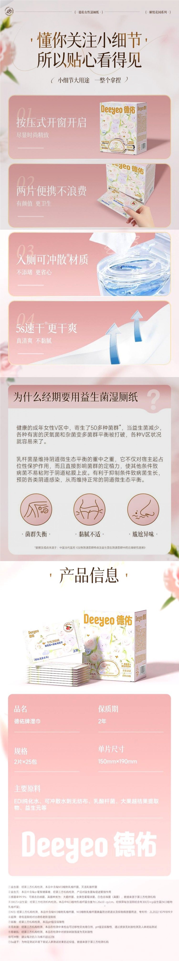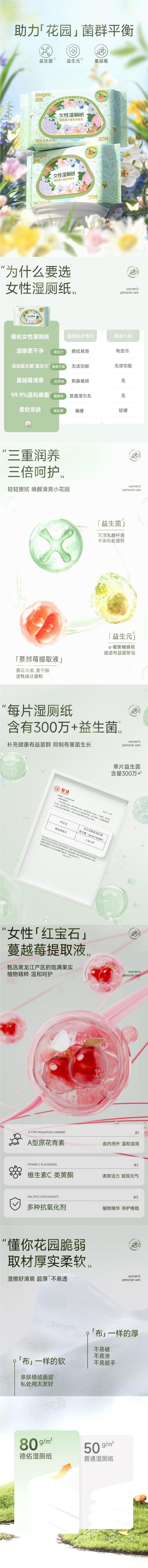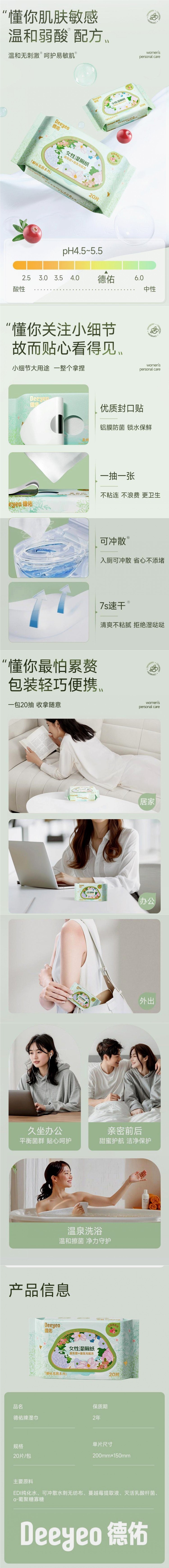 Женская влажная туалетная бумага с пробиотиком Deyou, 20 насосов, мягкая и нелипкая портативная извлекаемая женская влажная туалетная бумага A
