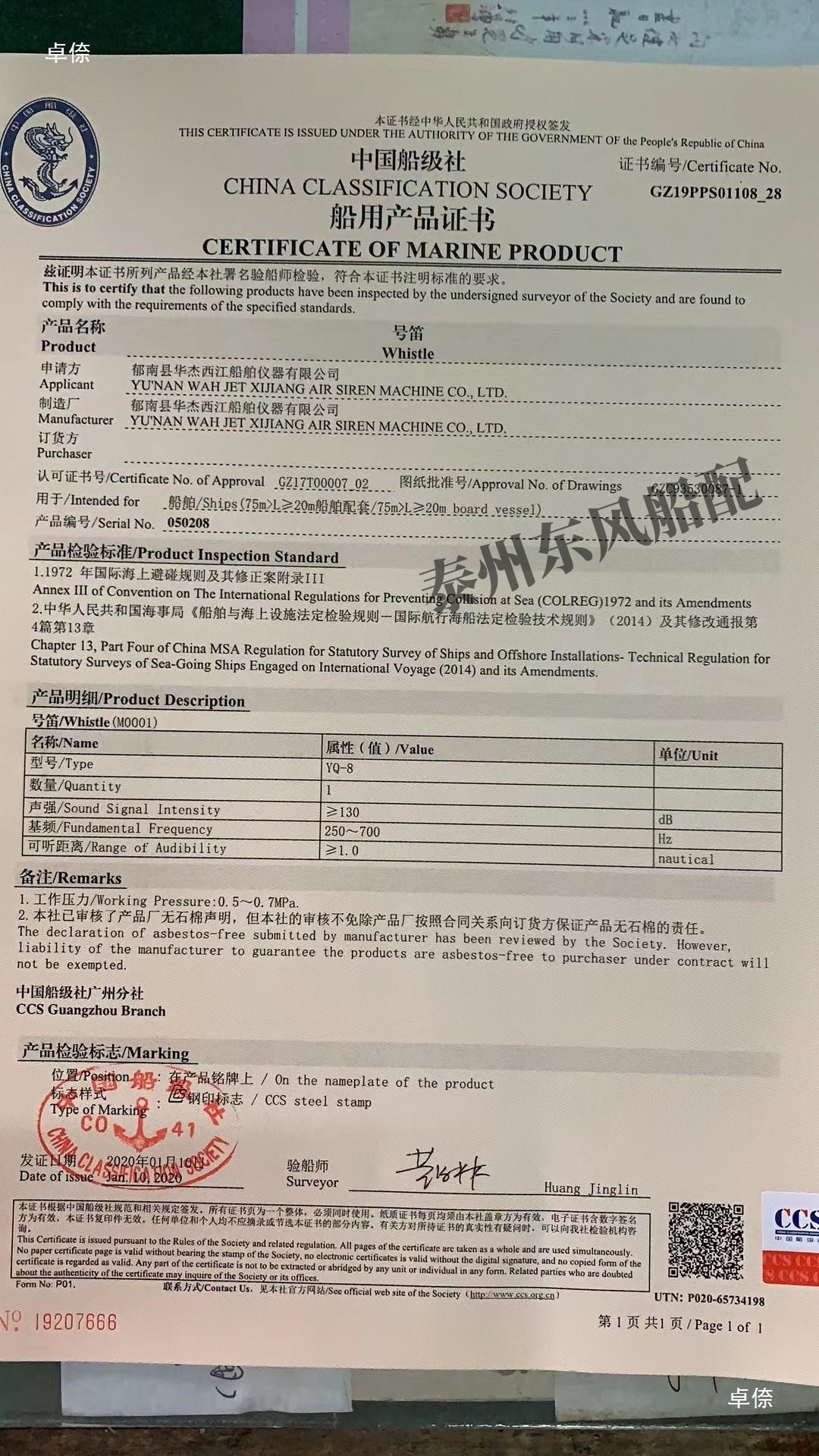 Ручной свисток YQ-6 без осмотра лодки; YQ--8 ручной свисток CCS проверка судна; Ручной свисток YQ-10 без проверки судна; Ручной свисток YQ-15 Проверка судна CCS; Электрический свисток YQ-6, напряжение 220 В.; Электрический свисток YQ-8, напряжение 220 В.; Электрический свисток YQ-10, напряжение 220 В.; Электрический свисток YQ-15, напряжение 220 В.; диафрагма