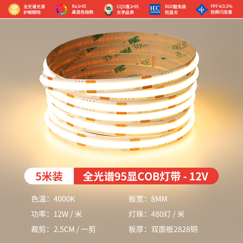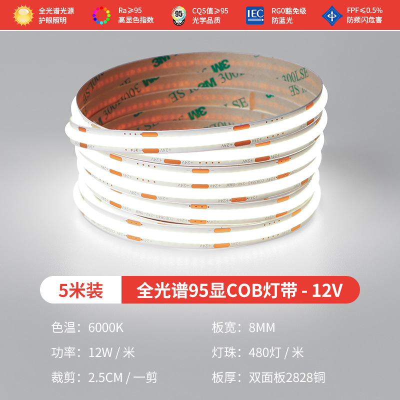 Световая полоса COB шириной 8 мм, 24 В, супер яркая, 12 В