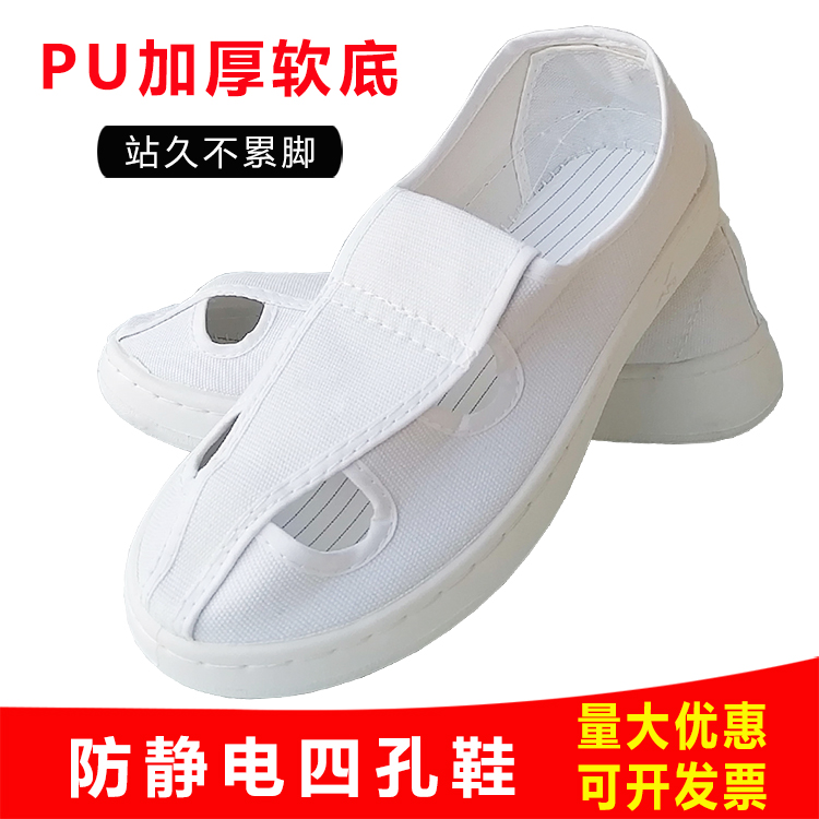Антистатическая обувь из искусственной кожи с четырьмя отверстиями, без пыли, с четырьмя отверстиями, мягкая подошва, дышащая, пылезащитная, парусиновая, мужская и женская, сине-белая, антистатическая обувь для мастерских