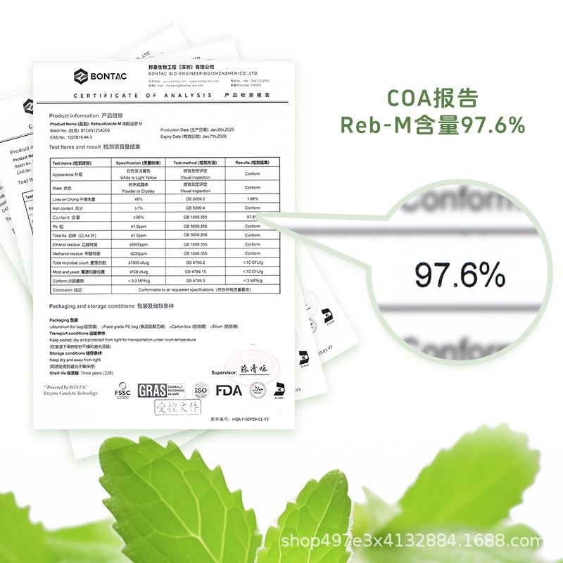 Гликокосид стевии RM95%, экстракт стевии, биологический братай, прямые продажи с фабрики, 0, водорастворимый подсластитель калорий