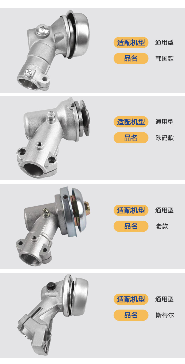 Одноушиная маленькая крышка, рабочая головка, 26 трубок, 7 зубьев; Одноушиная маленькая крышка, рабочая головка, 26 трубок, 9 зубьев.; Рабочая головка с малой крышкой на одно ухо, 28 трубок, 9 зубьев; Рабочая головка в корейском стиле, 24 трубки, 4 зуба.; Рабочая головка с защитой от спутывания; Рабочая головка fs120, новая модель; Рабочая головка fs120 старая модель; 328 рабочая головка оранжевая; 328 соединительная пластина оранжевая
