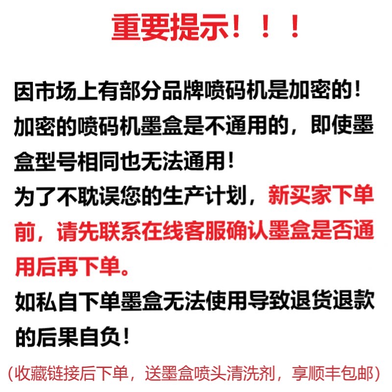 Важное примечание [Новые покупатели должны прочитать перед покупкой] Не делайте ставки на этот товар.; 1. [JW11M] Черный на водной основе/подходит для проницаемых материалов.; 2. [JS10M] Импортированный быстросохнущий черный цвет.; 3. [JS12M] Импортированный быстросохнущий черный цвет.; 4. [JS12M] Улучшенный импортный быстросохнущий черный цвет.; 5. [W3T10B-2590] Оригинальный быстросохнущий черный цвет, эксклюзивно для Gu Chen/Lu Bao.; 6. [W3T10B-2590] Оригинальный импортный мгновенно сохнущий черный цвет, эксклюзивно для Gu Chen/Lu Bao.; 7. [Импортированный быстросохнущий белый цвет]; 8. [Импортированный быстросохнущий красный цвет]; 9. [Импортированный быстросохнущий желтый цвет]; 10. [Импортированный быстросохнущий синий цвет]; 11. [Импортированный быстросохнущий зеленый цвет]; 12. [Импортированный быстросохнущий невидимый материал]; [Чернильный картридж с индивидуальным шифрованием] Специально для машин шифрования, обратитесь в службу поддержки клиентов.