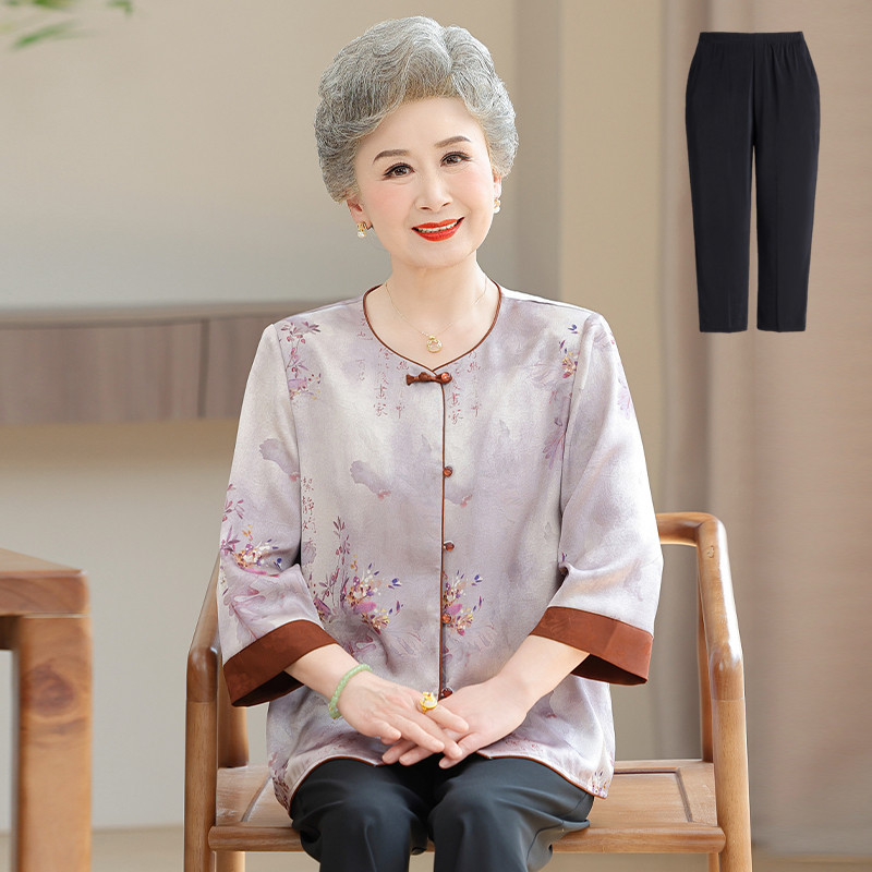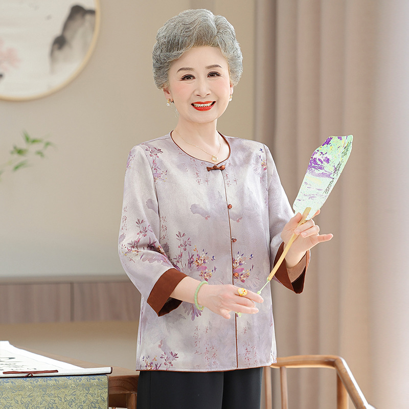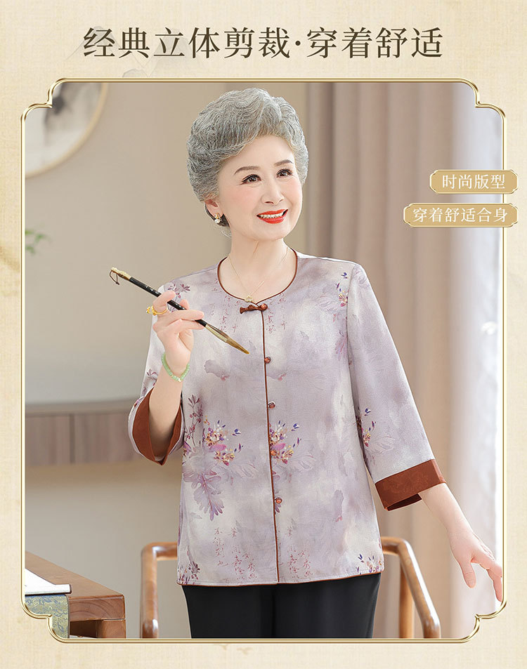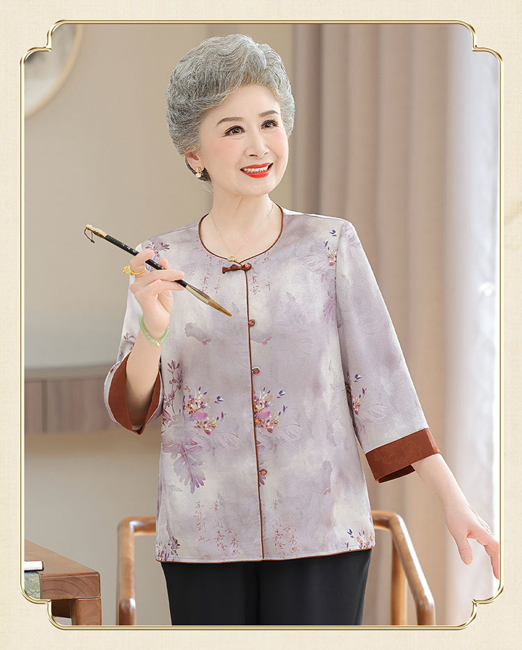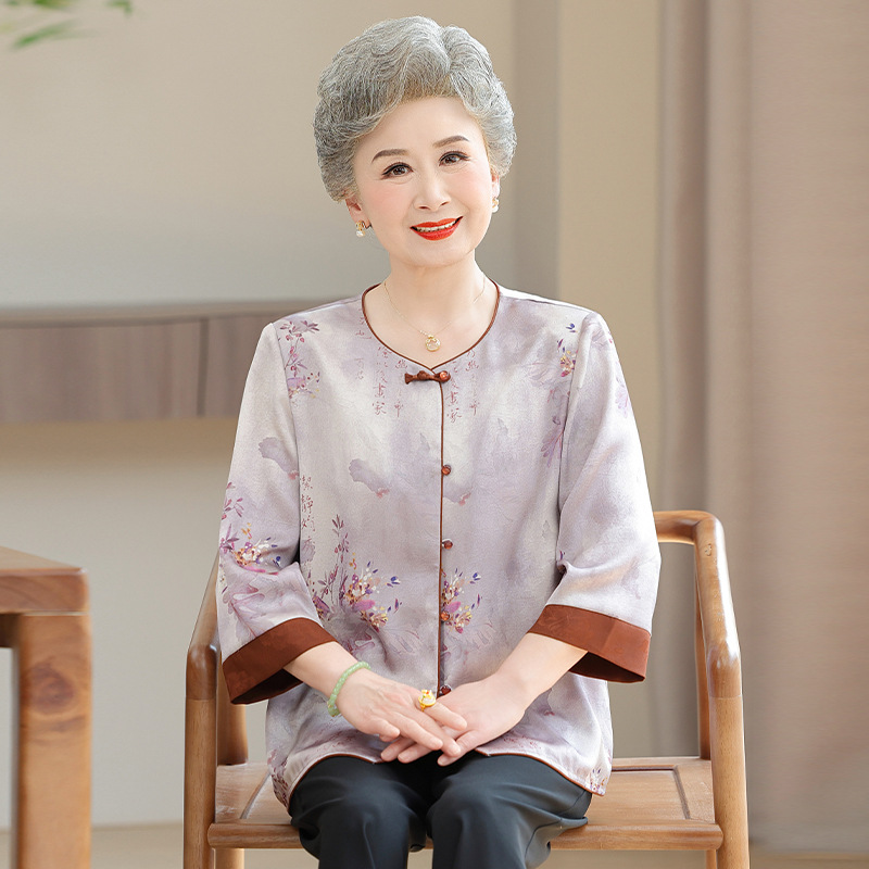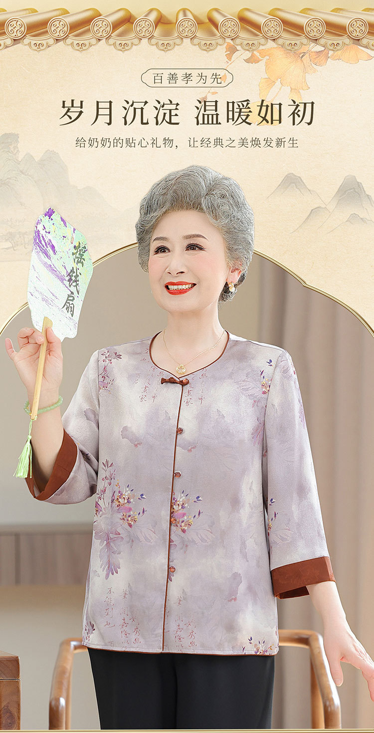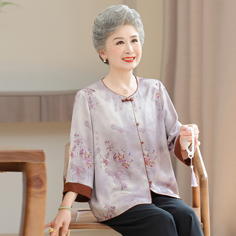 Женщины среднего и пожилого возраста летняя бабушка рубашка новый китайский стиль топ мама летняя рубашка высококлассная пожилая одежда