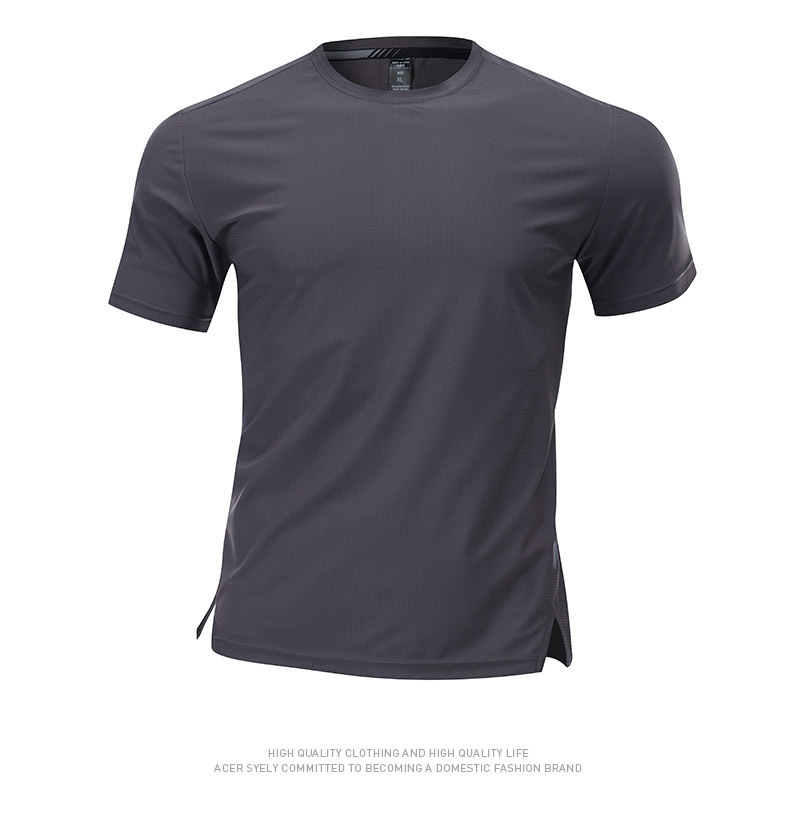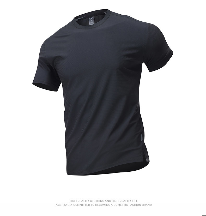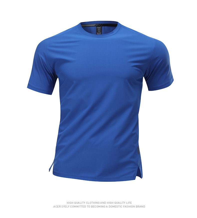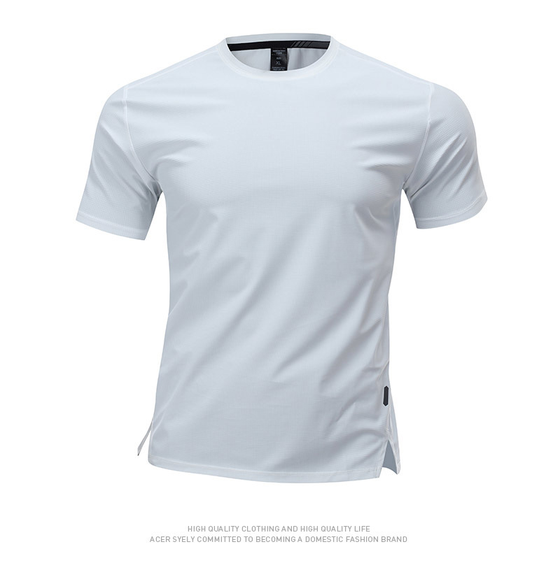 Прямая трансляция новой мужской футболки с круглым вырезом из дышащей сетки, летнего влагопоглощающего быстросохнущего топа с двумя открытиями, модной спортивной рубашки с короткими рукавами.