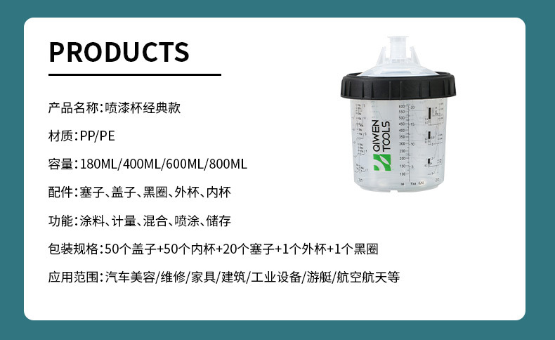 180 мл, набор из 50 штук + 1 алюминиевый адаптер + 1 палочка для смешивания краски; 400 мл, набор из 50 штук + 1 алюминиевый адаптер + 1 палочка для смешивания краски; 600 мл, набор из 50 штук + 1 алюминиевый адаптер + 1 палочка для смешивания краски; 800 мл, набор из 50 штук + 1 алюминиевый адаптер + 1 палочка для смешивания краски