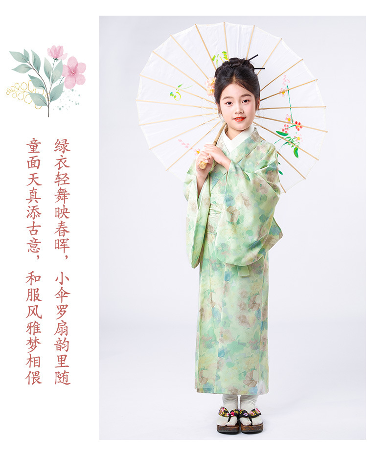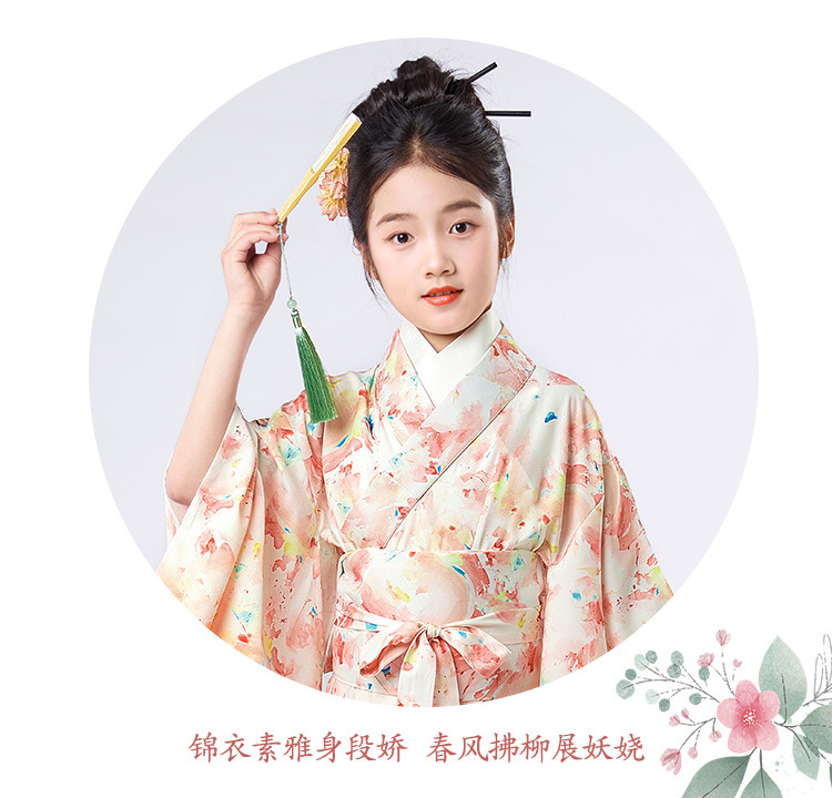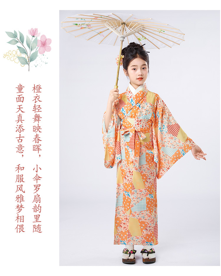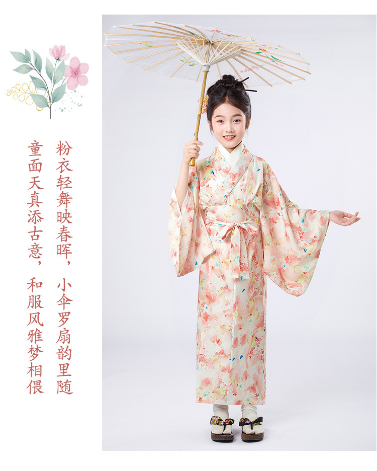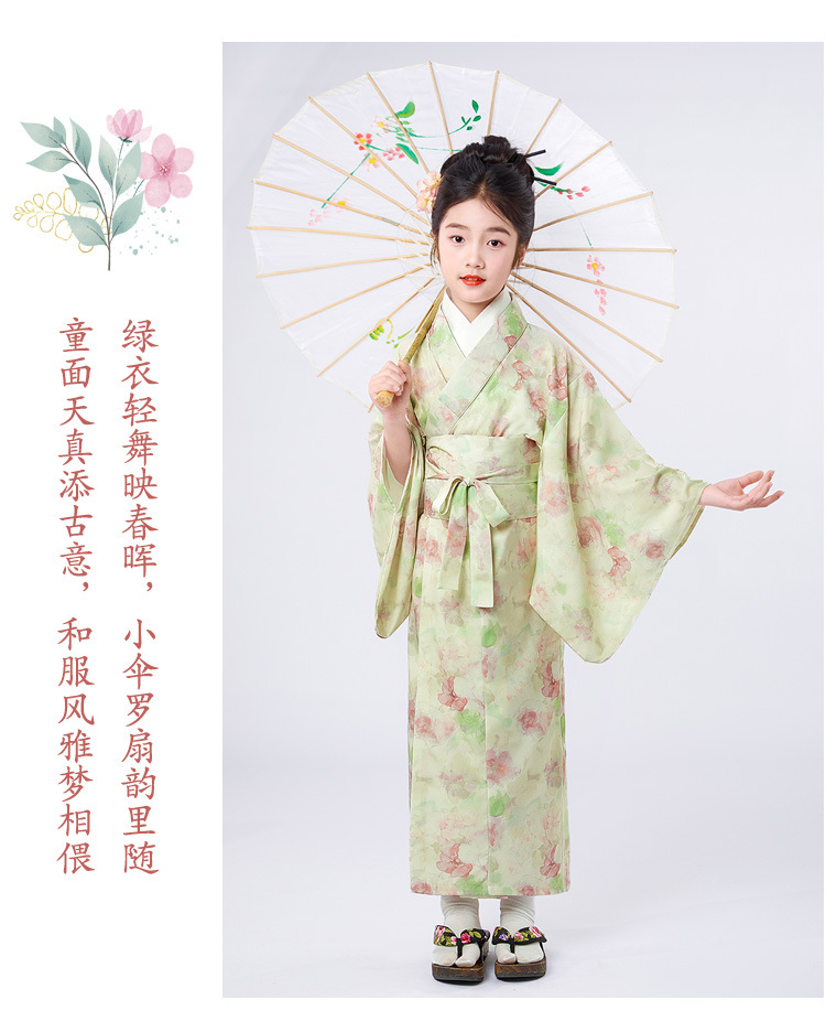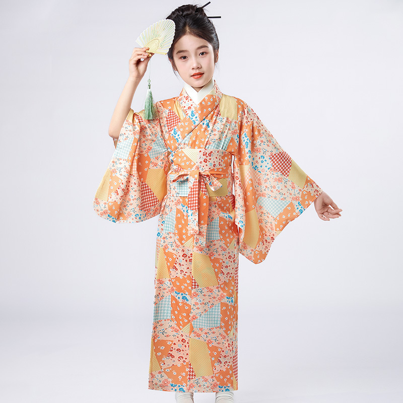 Детское японское кимоно с свежим принтом, традиционные юката для девочек, маленькие, средние и большие детские этнические сценические костюмы