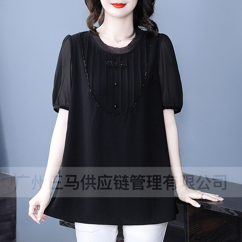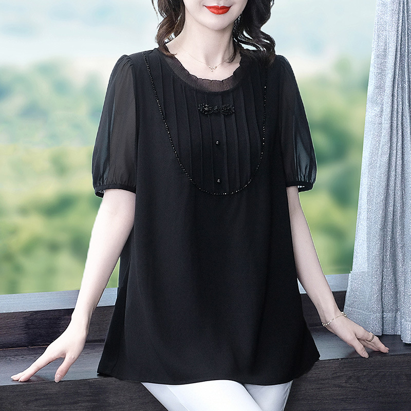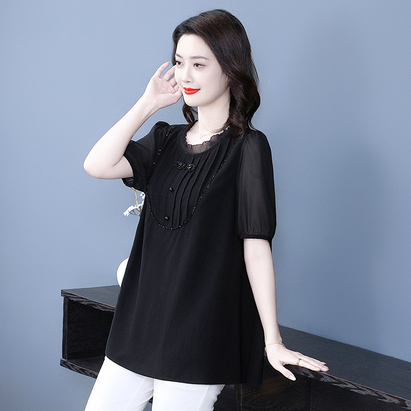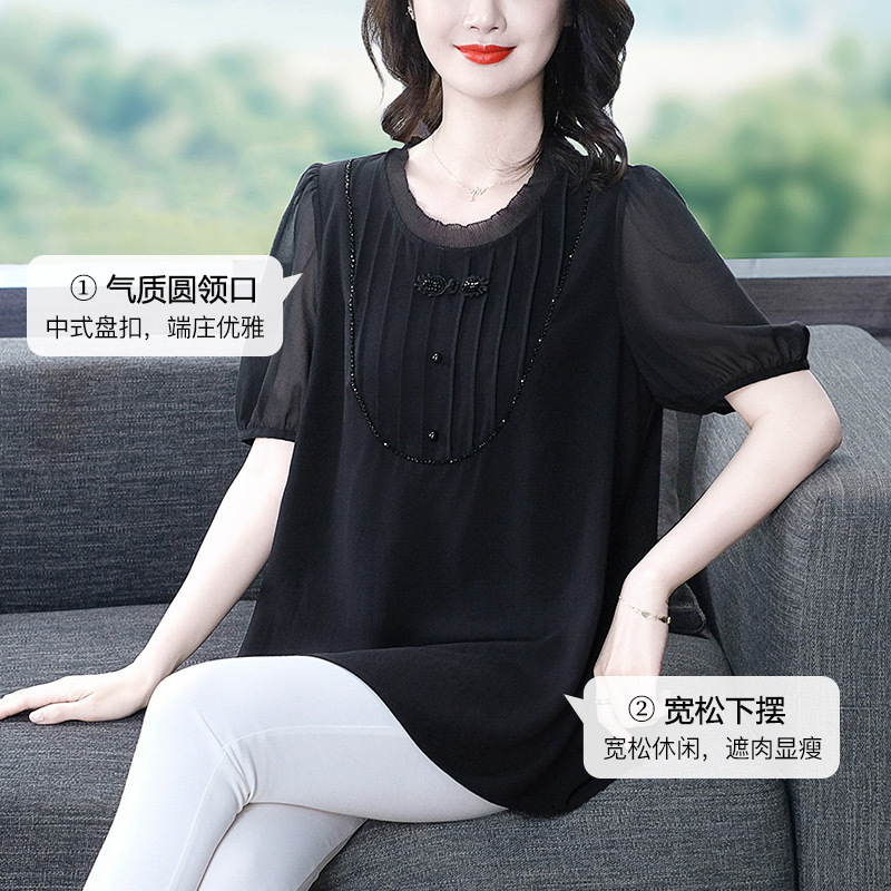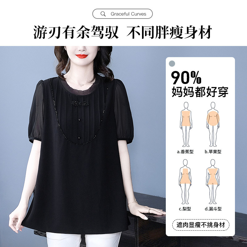 Летняя легкая зрелая высококачественная кружева свободного размера плюс большой размер с короткими рукавами шифоновая рубашка топ 240 фунтов толстая женская одежда среднего возраста