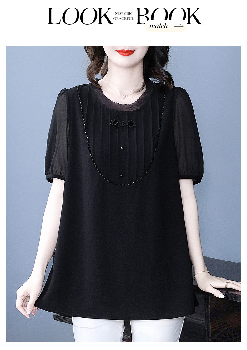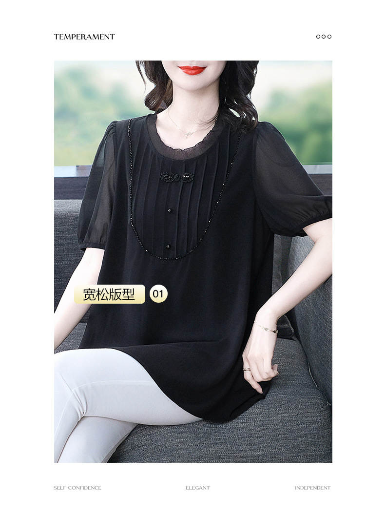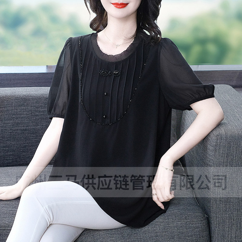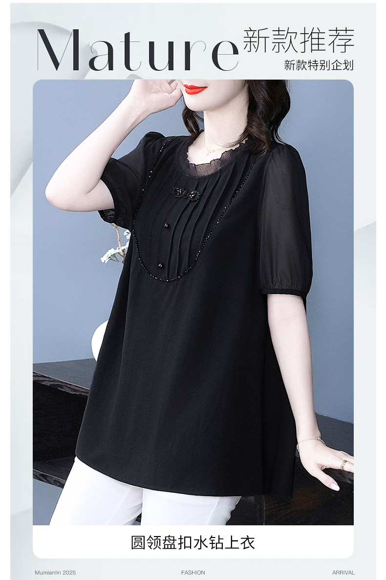 Летняя легкая зрелая высококачественная кружева свободного размера плюс большой размер с короткими рукавами шифоновая рубашка топ 240 фунтов толстая женская одежда среднего возраста