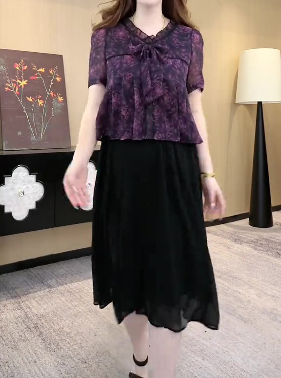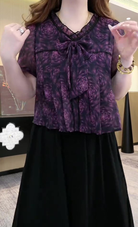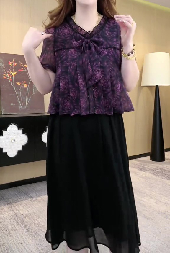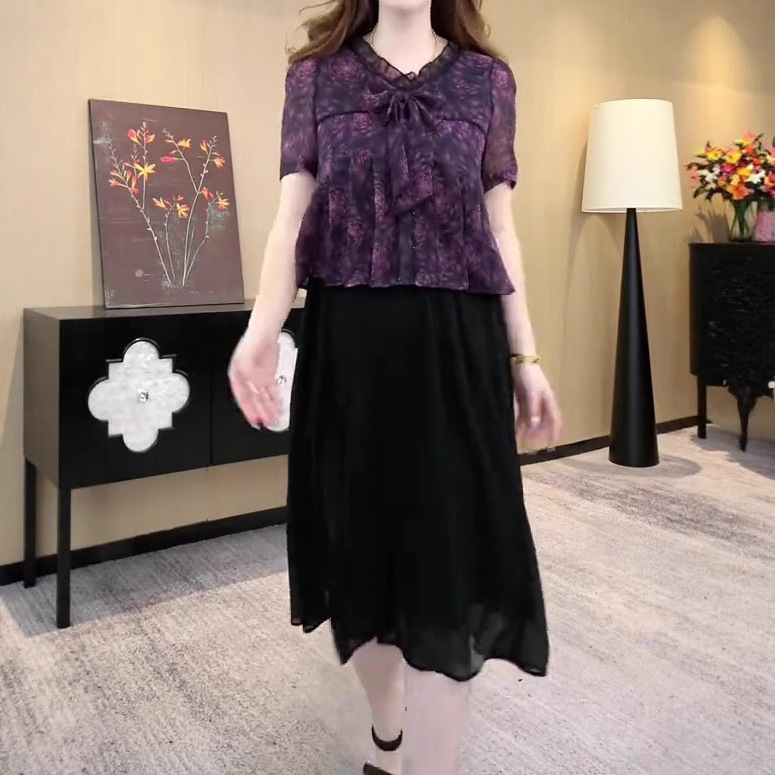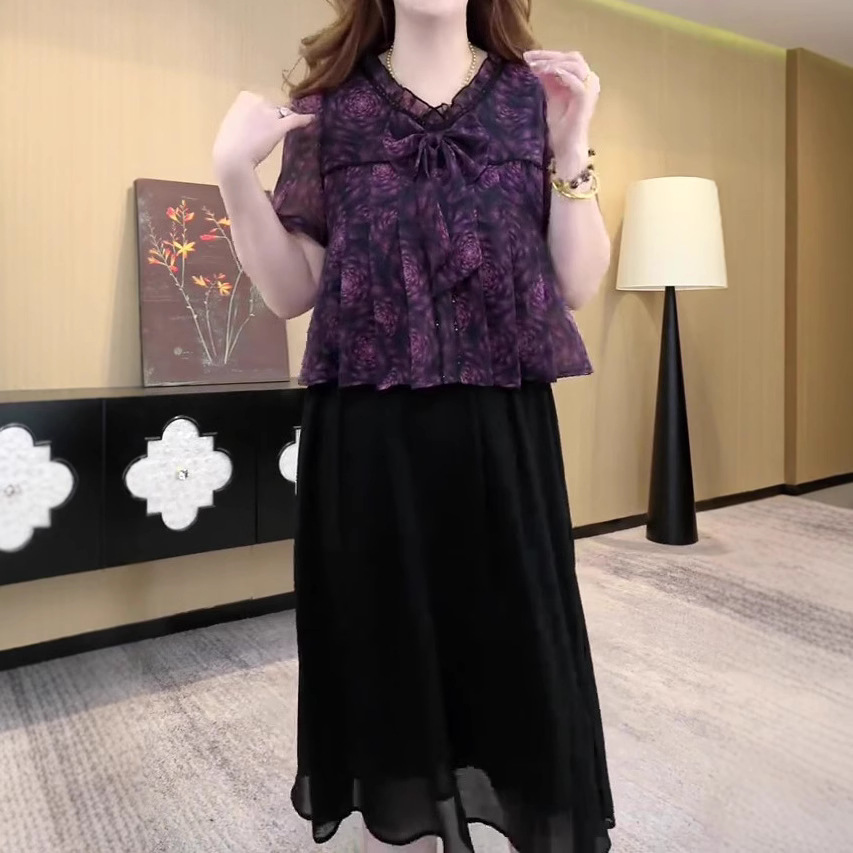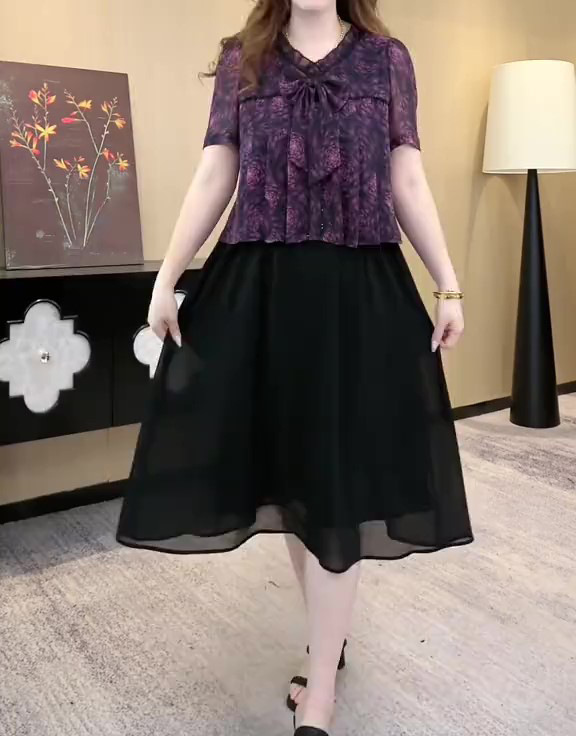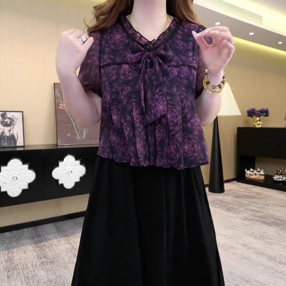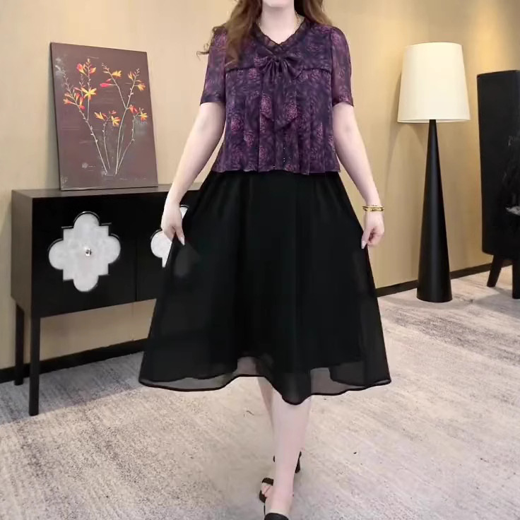 2025 новый летний новый большой размер 240 кг толстый MM шифоновый бант A свободно повседневная юбка женская одежда