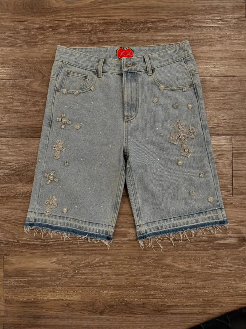 Модные джинсовые шорты с полным стразовым декором в стиле хип-хоп, прямые, с эффектом страз, джинсы-пятишорты, новый стиль 2025, крутой дизайн