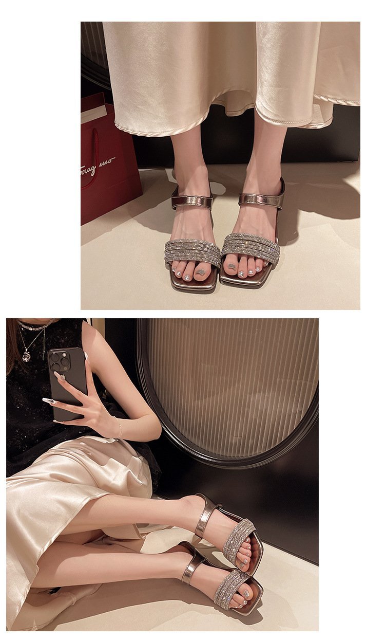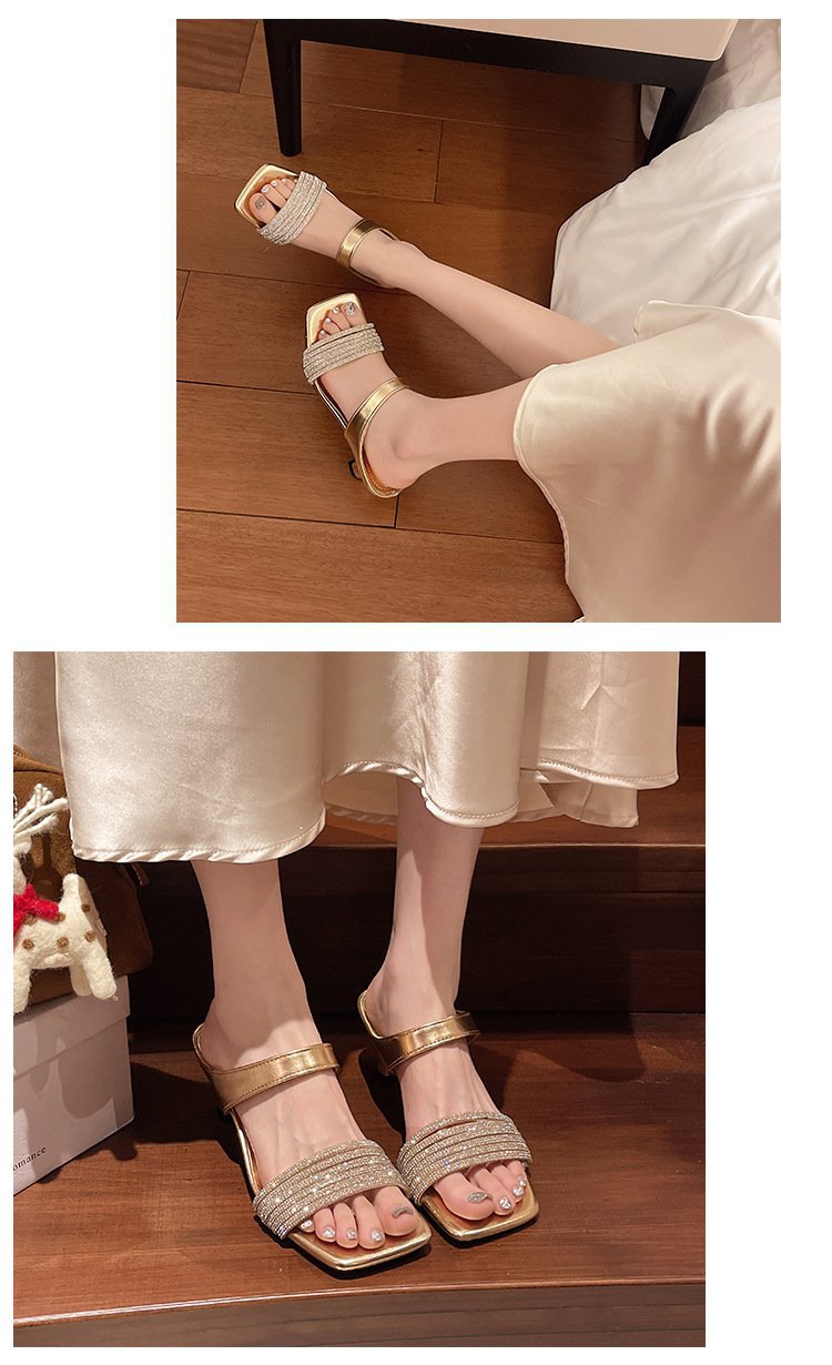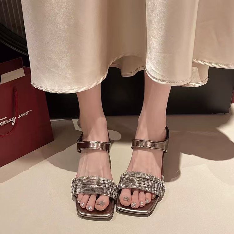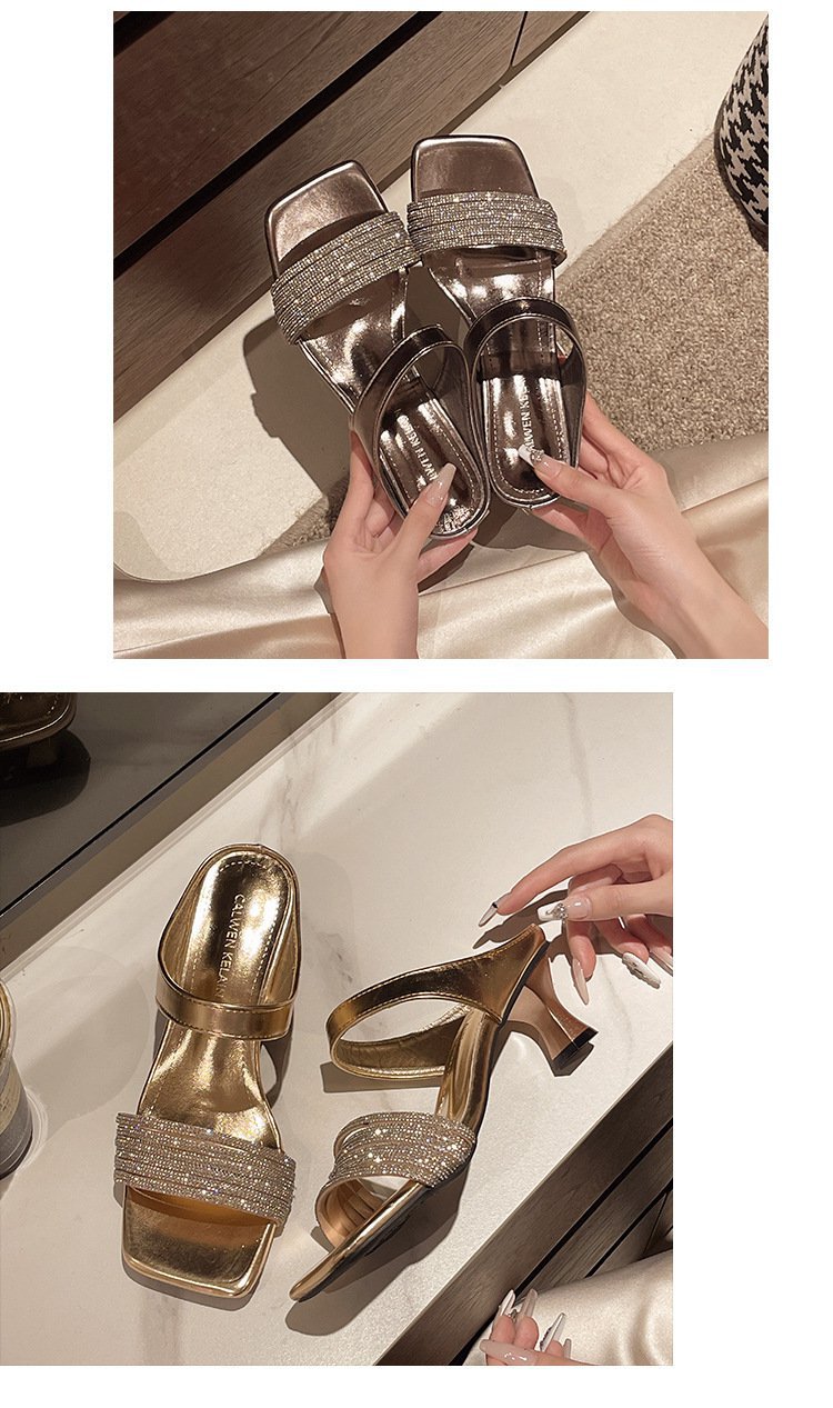 Высокие ощущения от страз с толстыми тапочками на каблуках женщины 2025 года