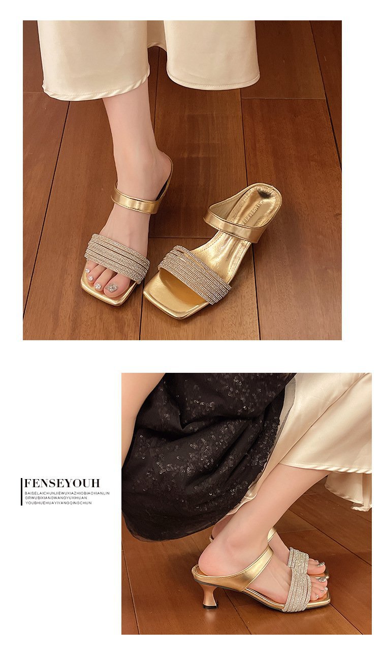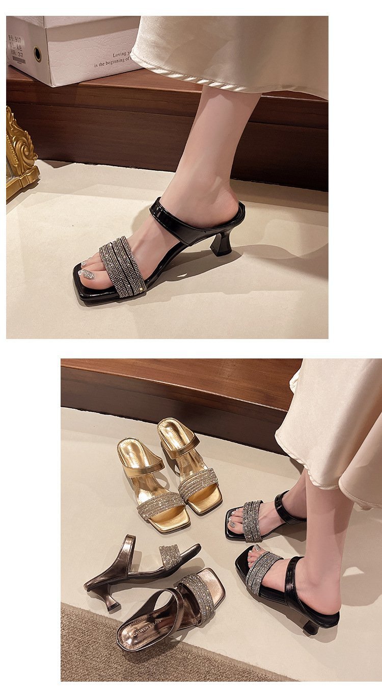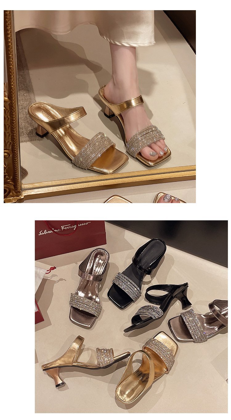 Высокие ощущения от страз с толстыми тапочками на каблуках женщины 2025 года