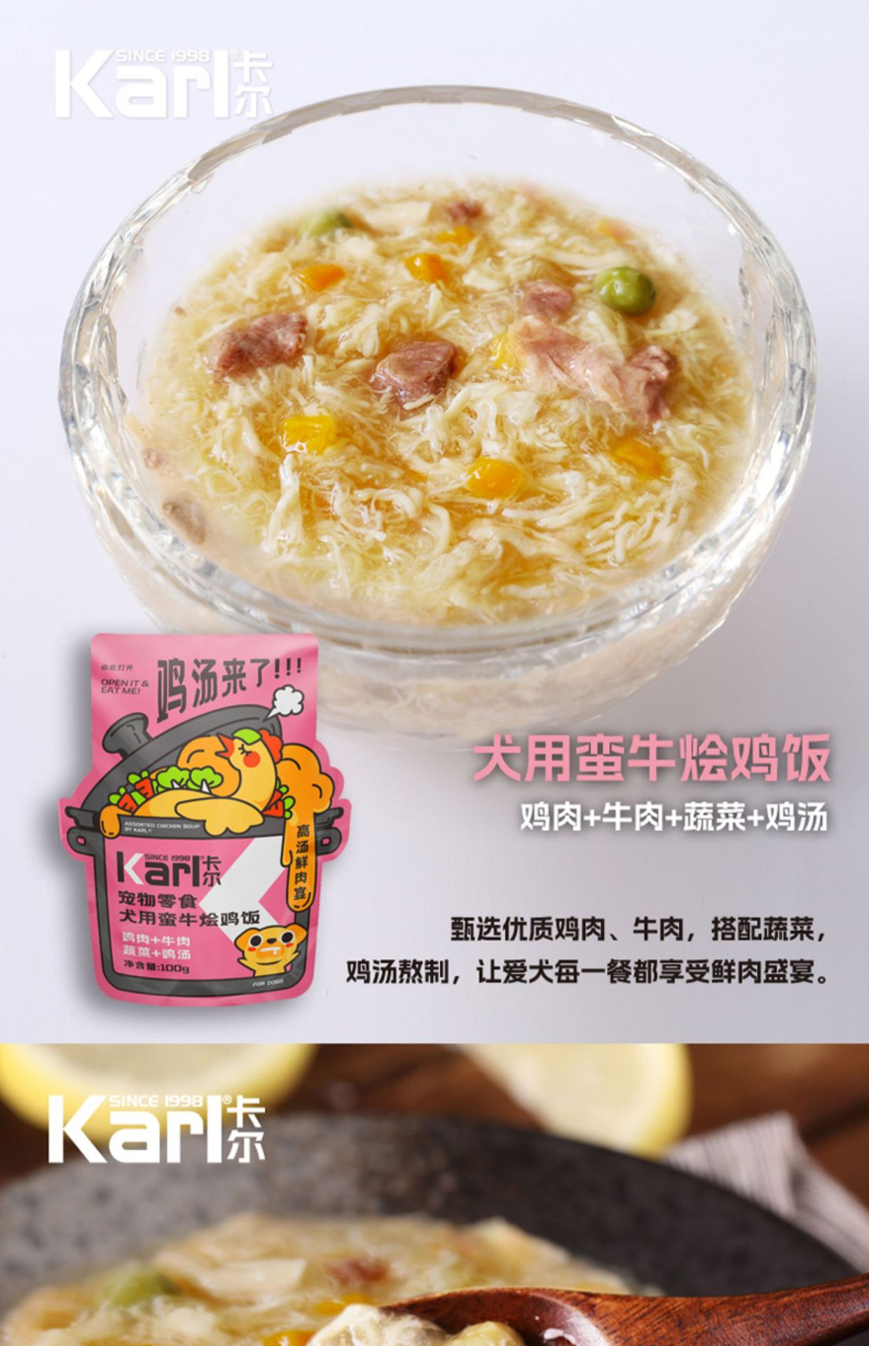 Karl Karl Dog Snacks Куриный суп здесь, свежий мясной праздник, замечательные свежие пакеты, бибимбап, увлажняющий влажный корм 100г