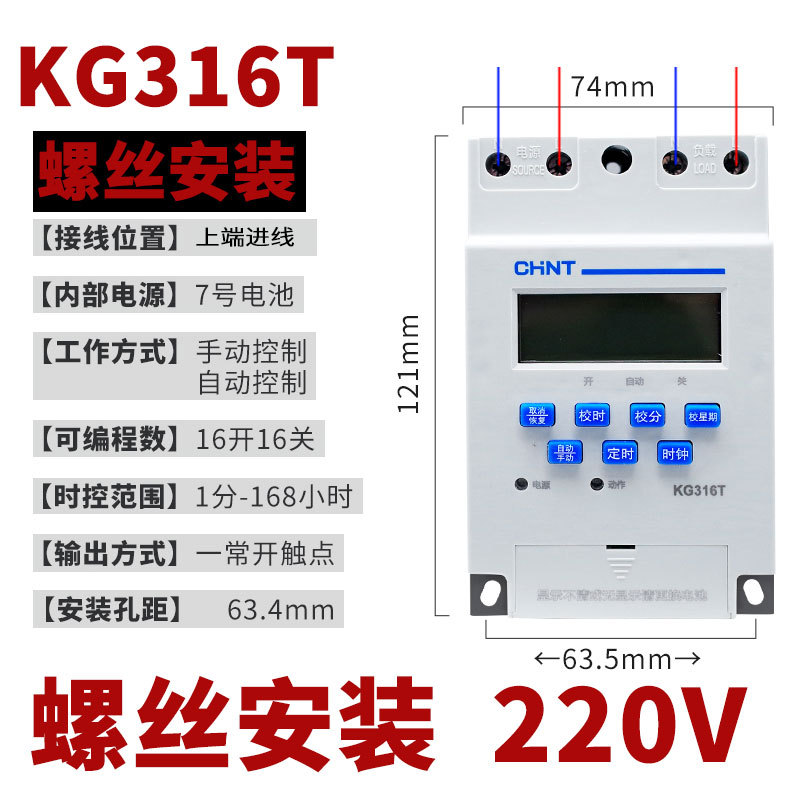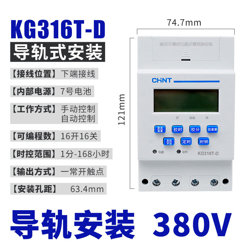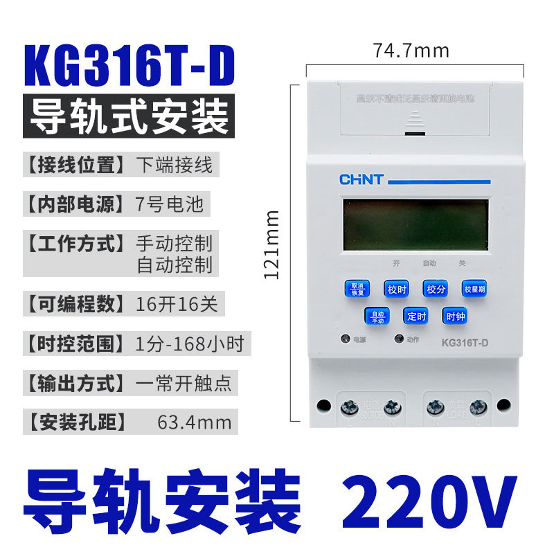 Переключатель управления временем Chint KG316T-D, контроллер времени 220 В, автоматический микрокомпьютерный таймер kg316t, трехфазный