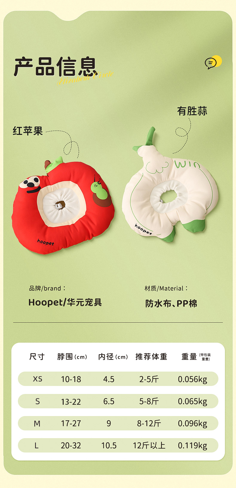 【品名】:HOOPET宠物伊丽莎白圈-(红苹果/有胜蒜) (防水款)XS/S/M/L