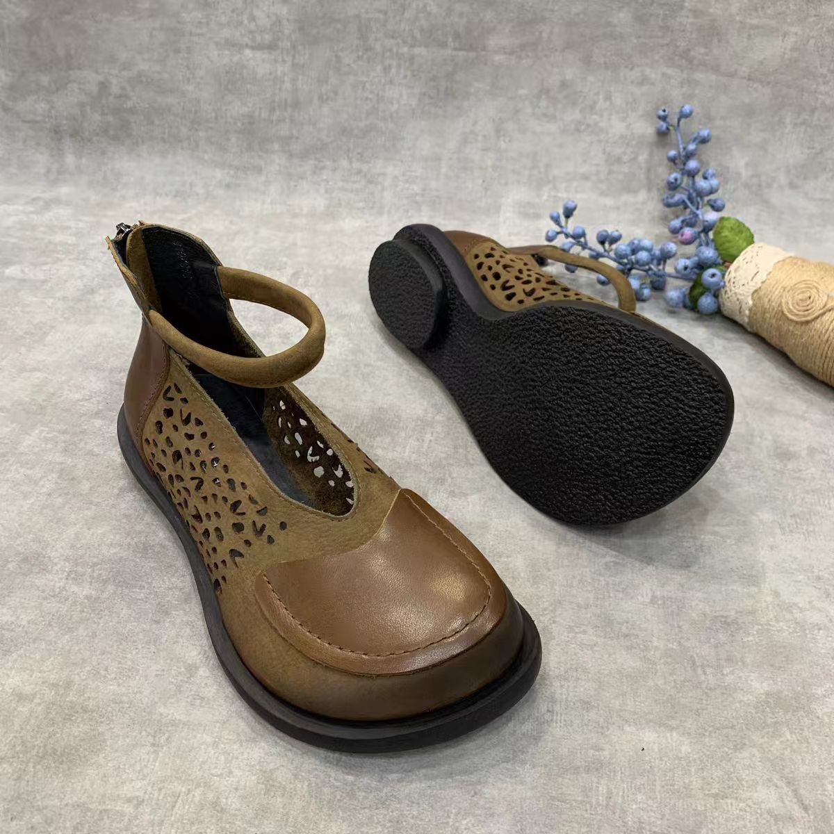 Туфли из мягкой кожи, нескользящая подошва с сухожилиями, плоская подошва, женская обувь среднего возраста, летняя удобная мягкая подошва, обувь для мам, сабо для женщин.
