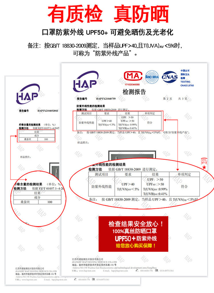 此外,我们推出的7A蚕丝面罩,采用均码设计,版型经过调整,更加贴合各种脸型,相比22姆米的面罩稍小一些,适合追求精致贴合感的顾客。每款7A蚕丝面罩都配有精美的包装,并附赠专业检测报告,确保产品的品质和安全性,为您提供更高端的防晒选择。
