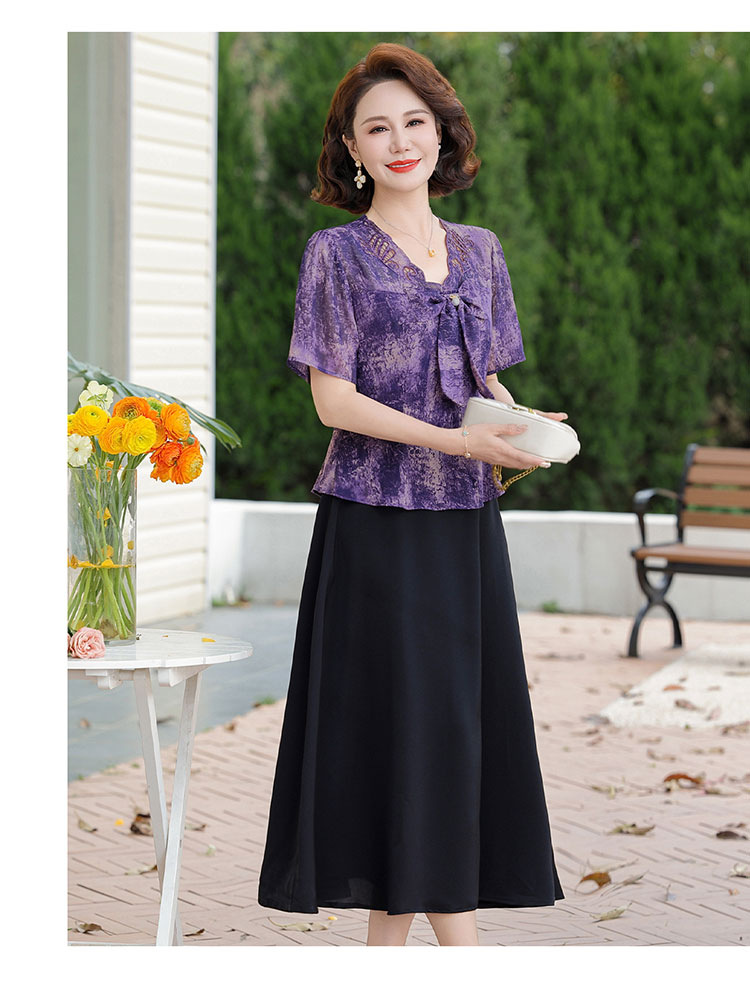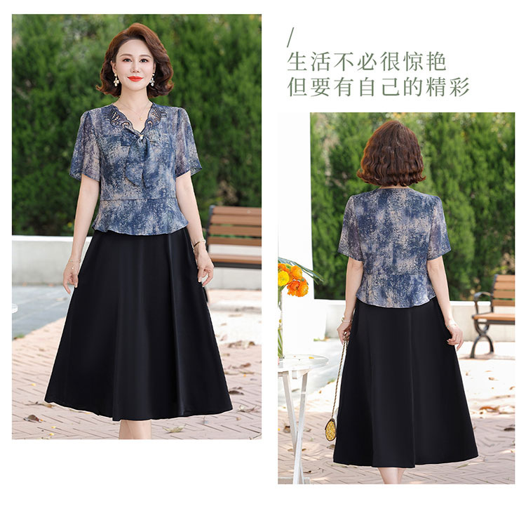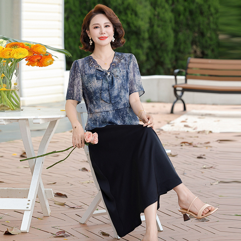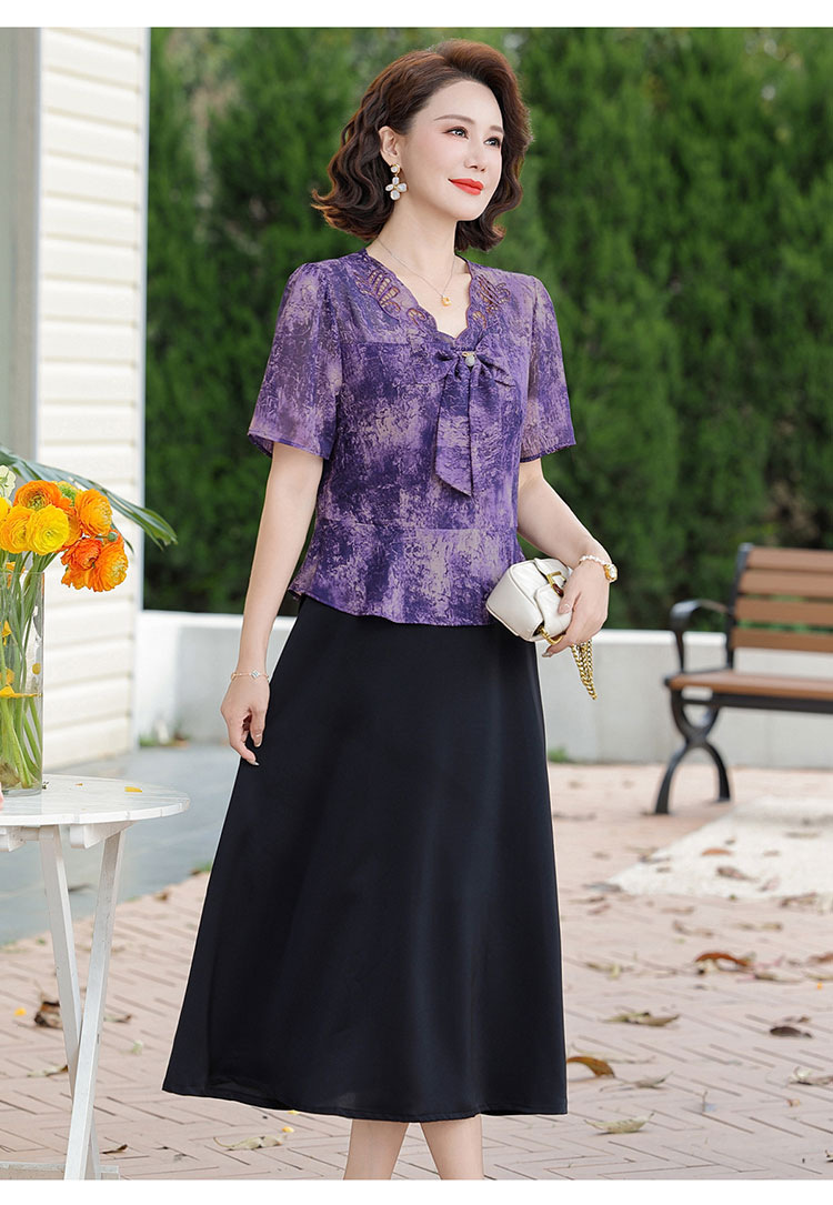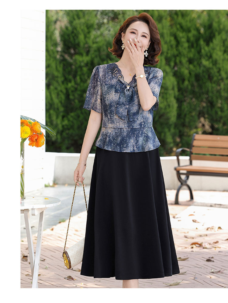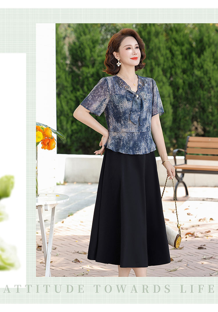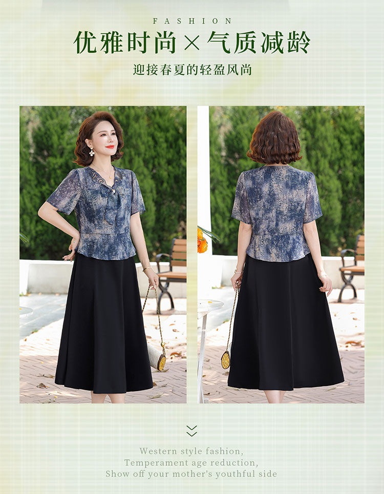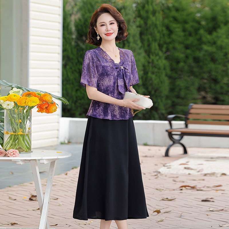 Мама среднего возраста летнее платье 2025 новая мода с короткими рукавами