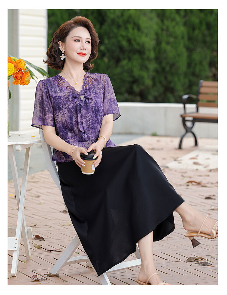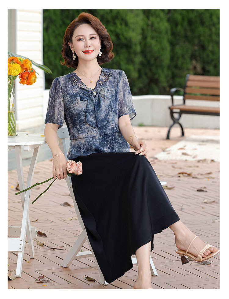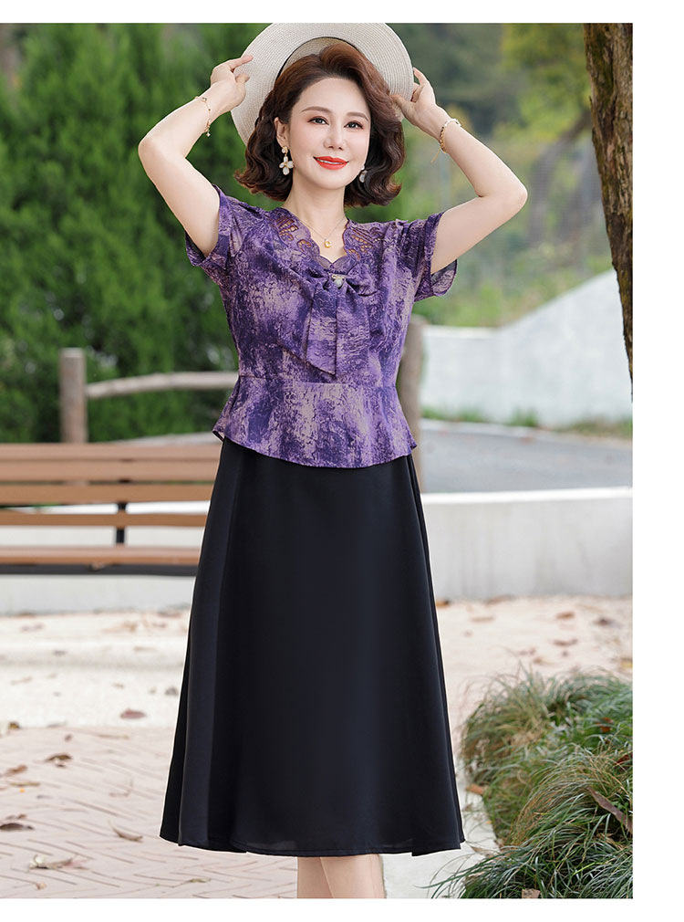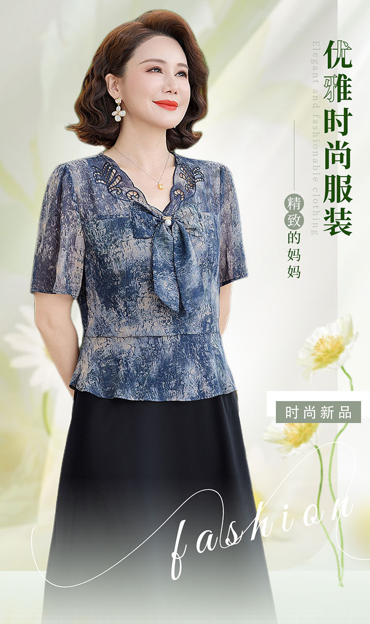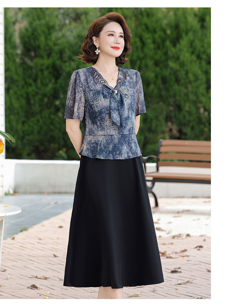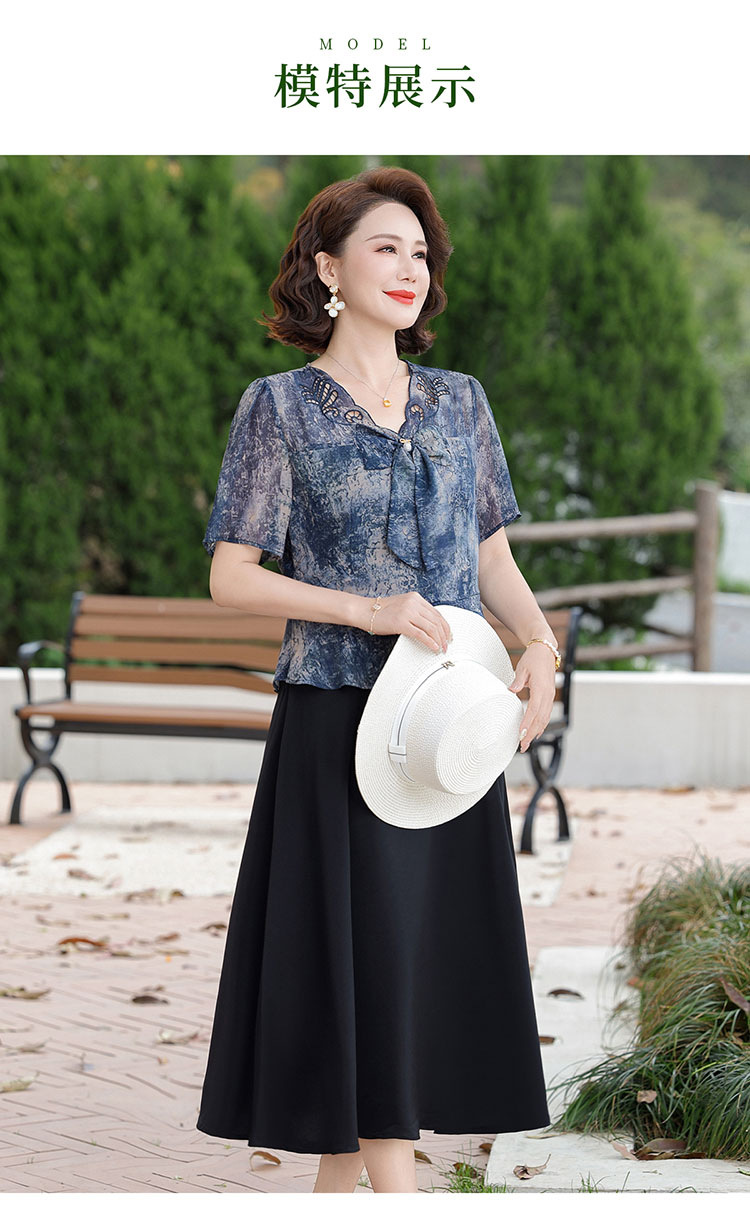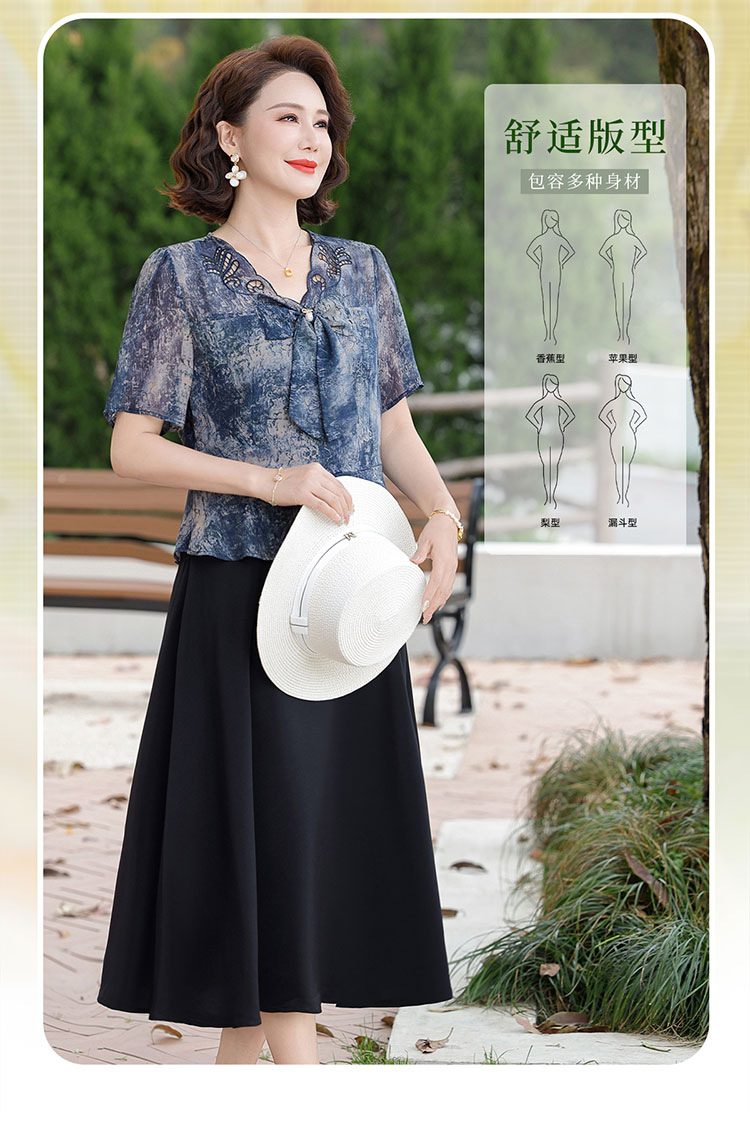 Мама среднего возраста летнее платье 2025 новая мода с короткими рукавами