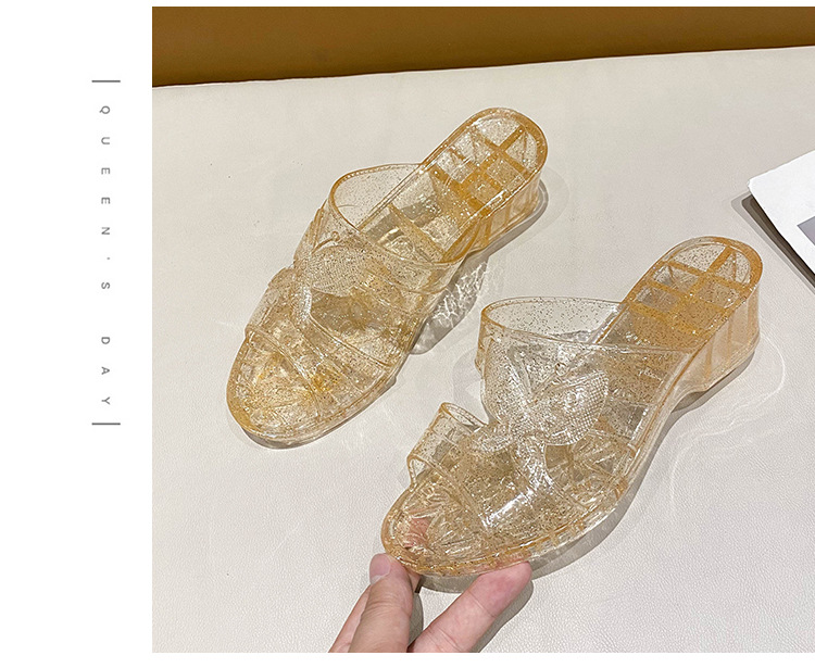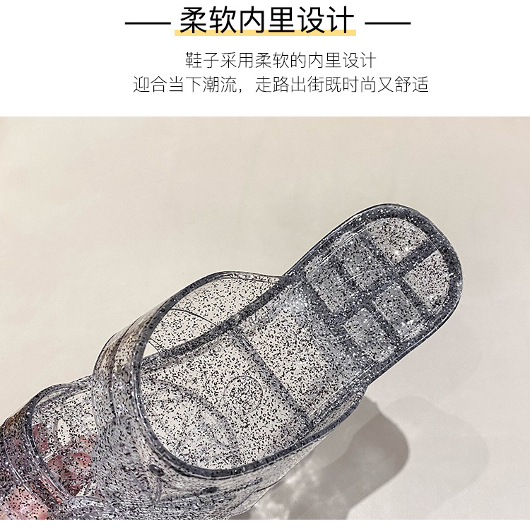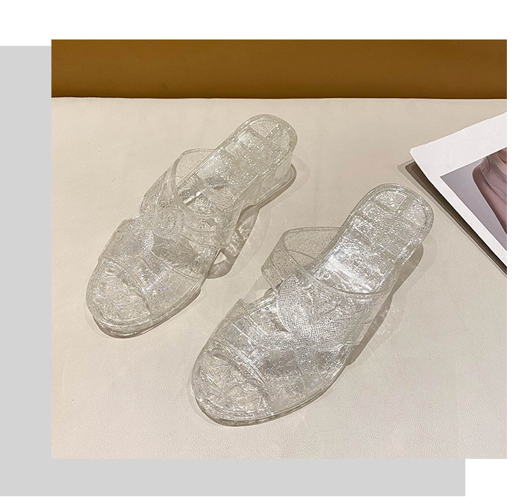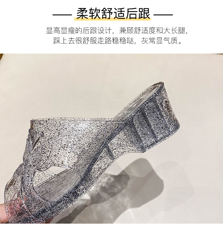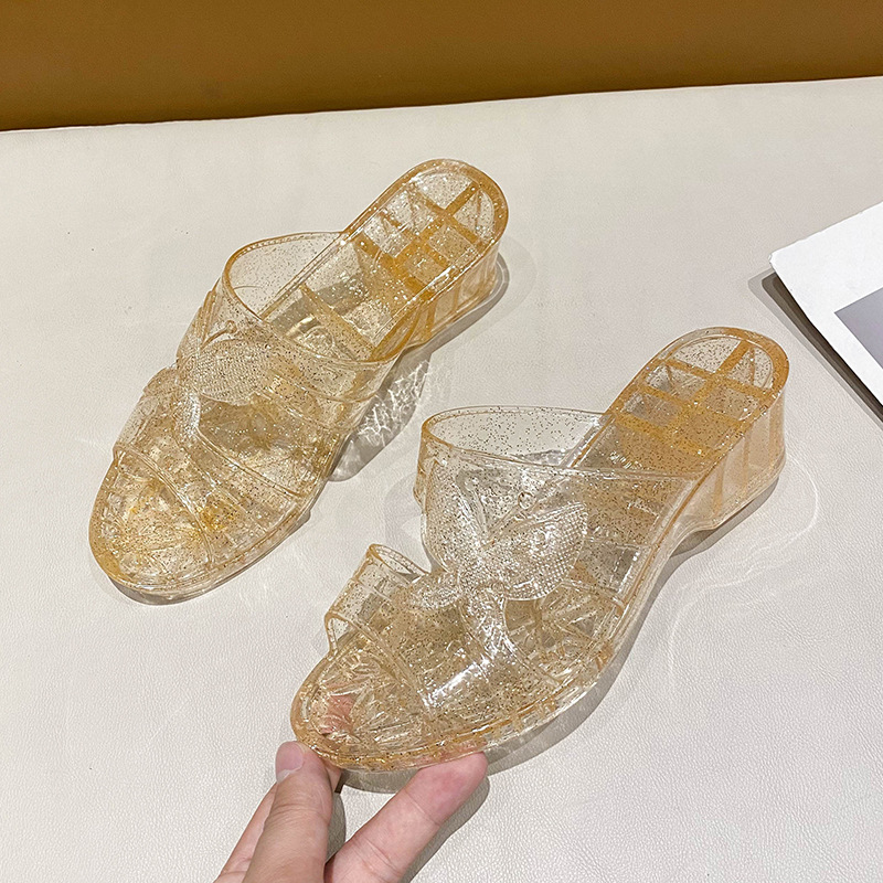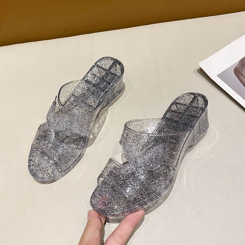 Женские пластиковые тапочки с кристаллами, летняя модная верхняя одежда, пляжная обувь-желе, нескользящая обувь на танкетке, толстая подошва, износостойкая повседневная обувь для мам