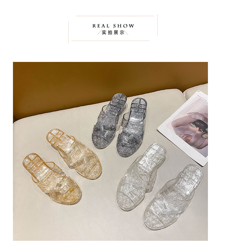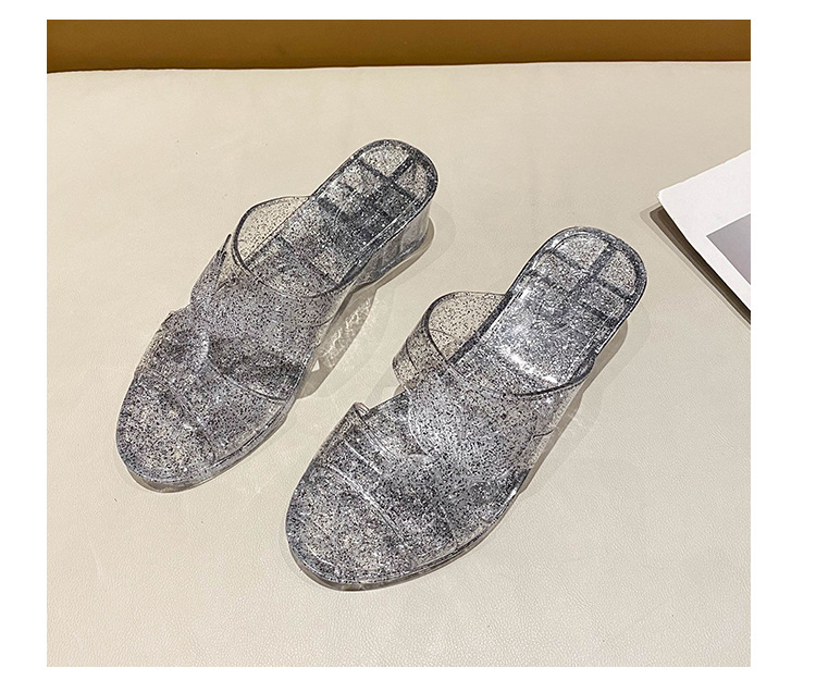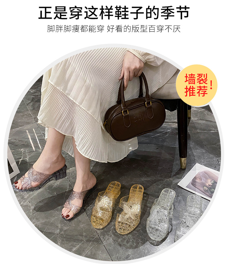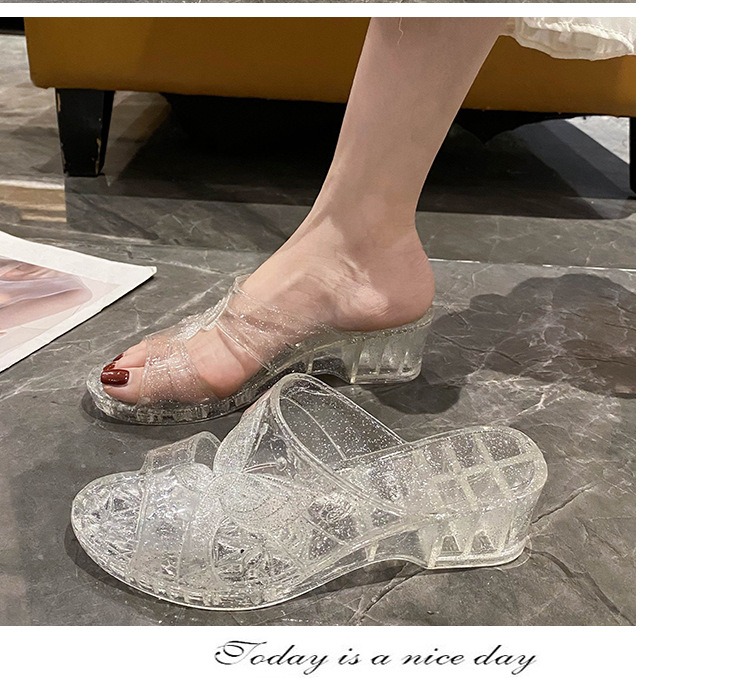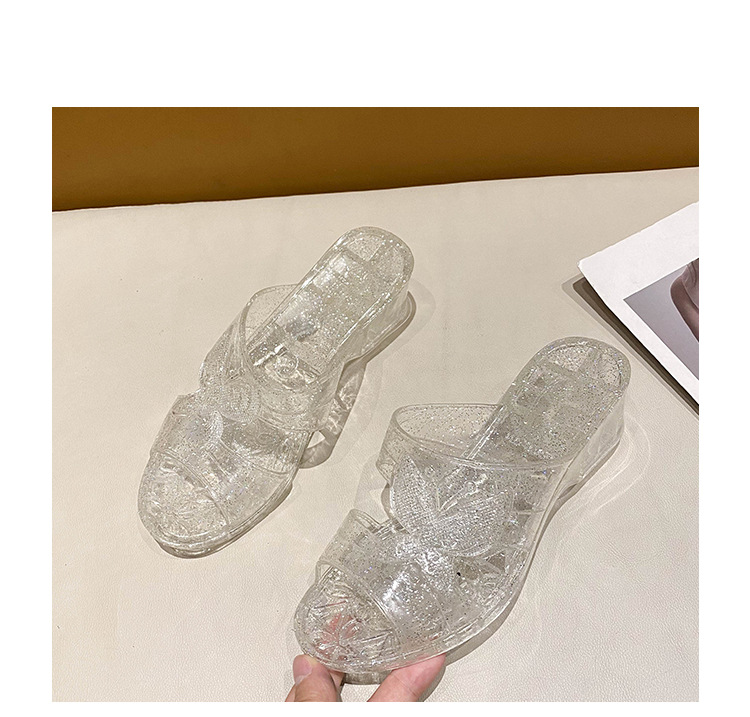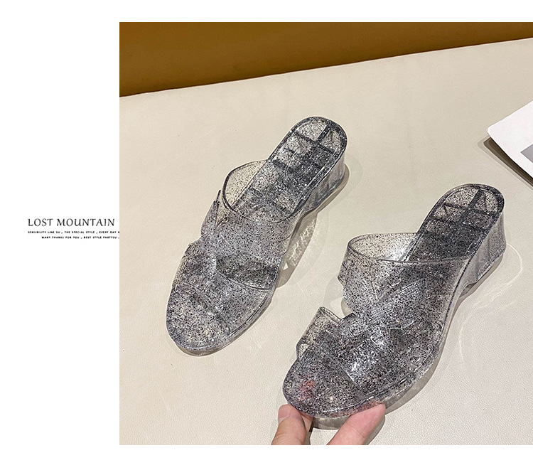 Женские пластиковые тапочки с кристаллами, летняя модная верхняя одежда, пляжная обувь-желе, нескользящая обувь на танкетке, толстая подошва, износостойкая повседневная обувь для мам