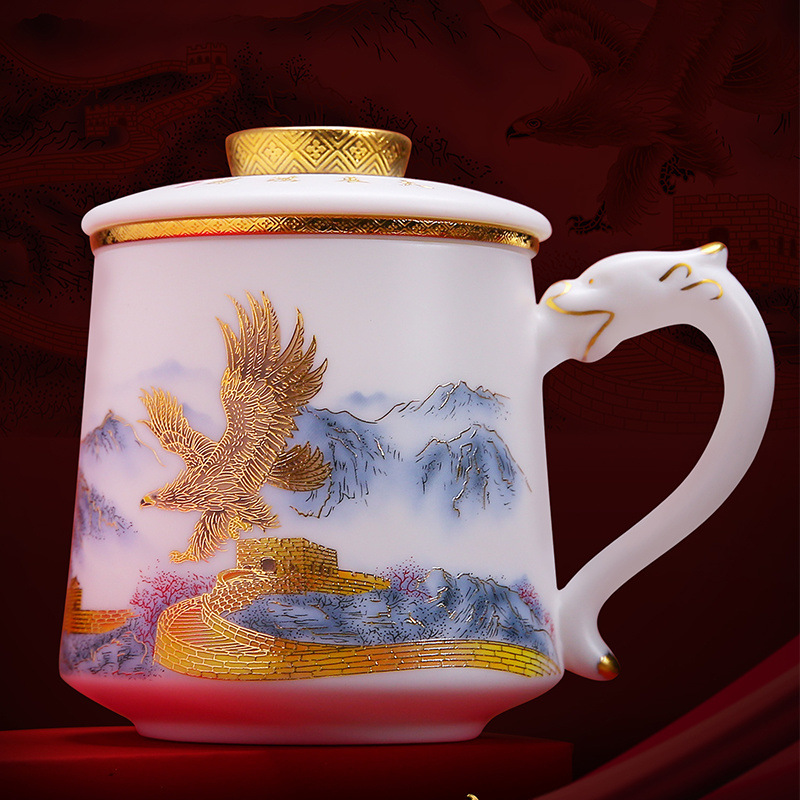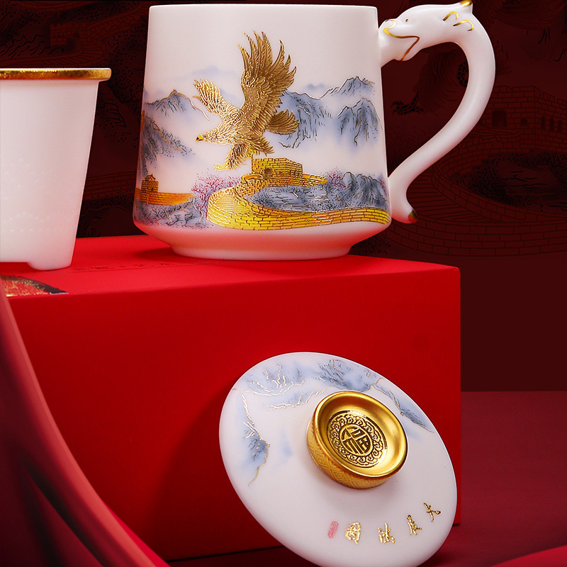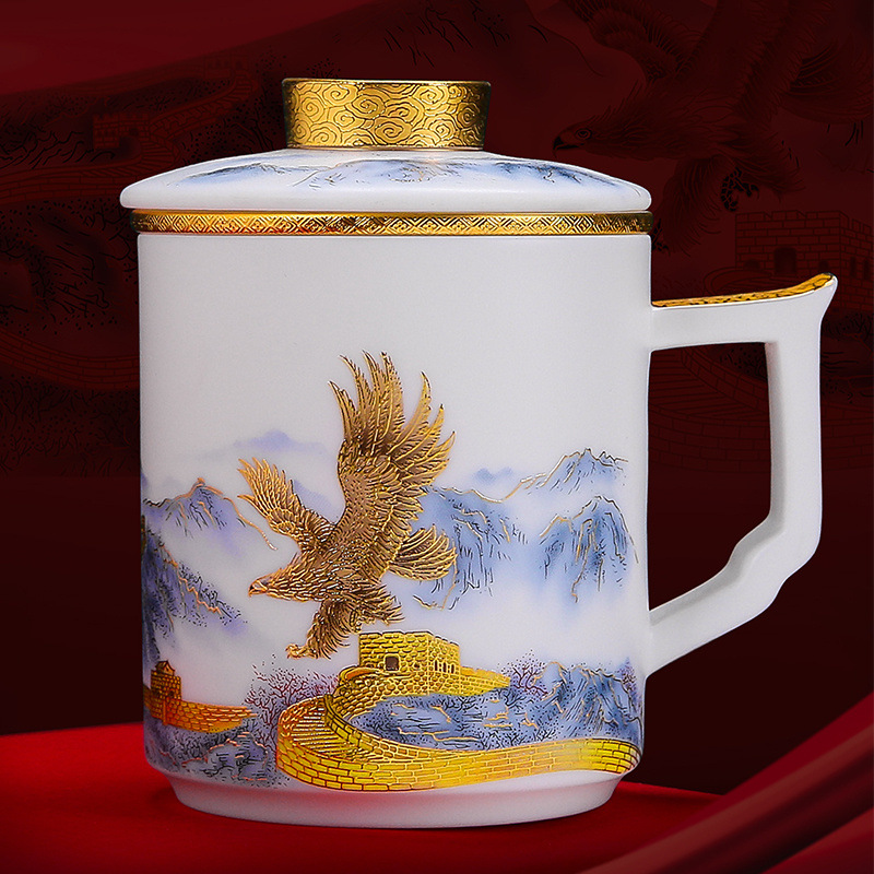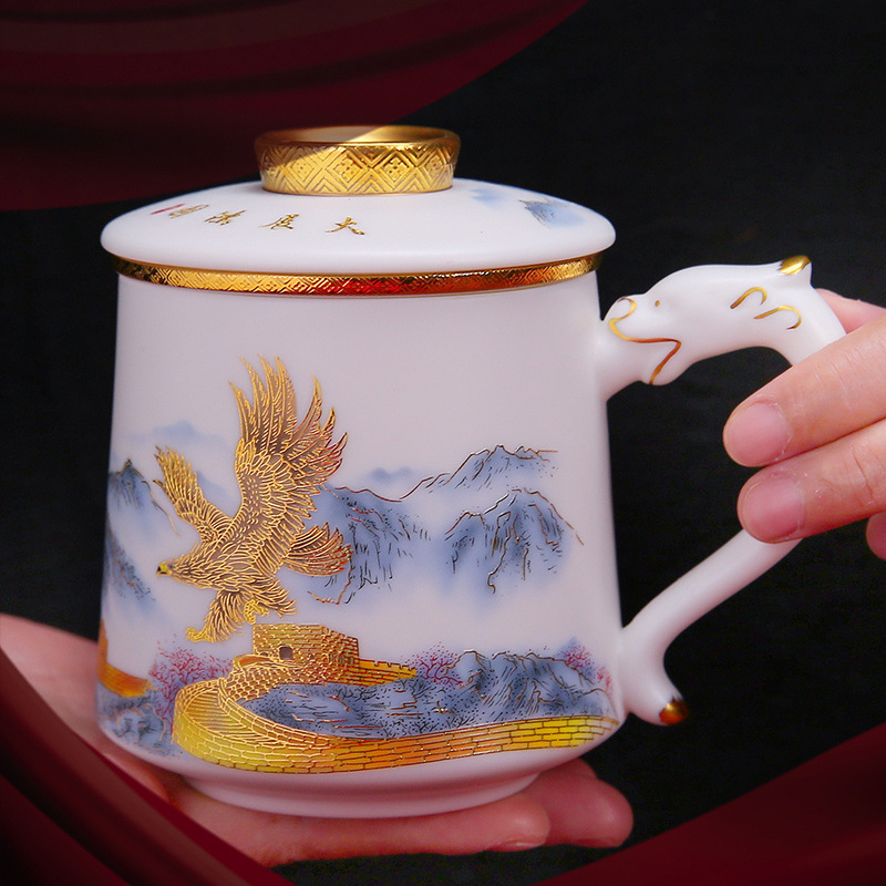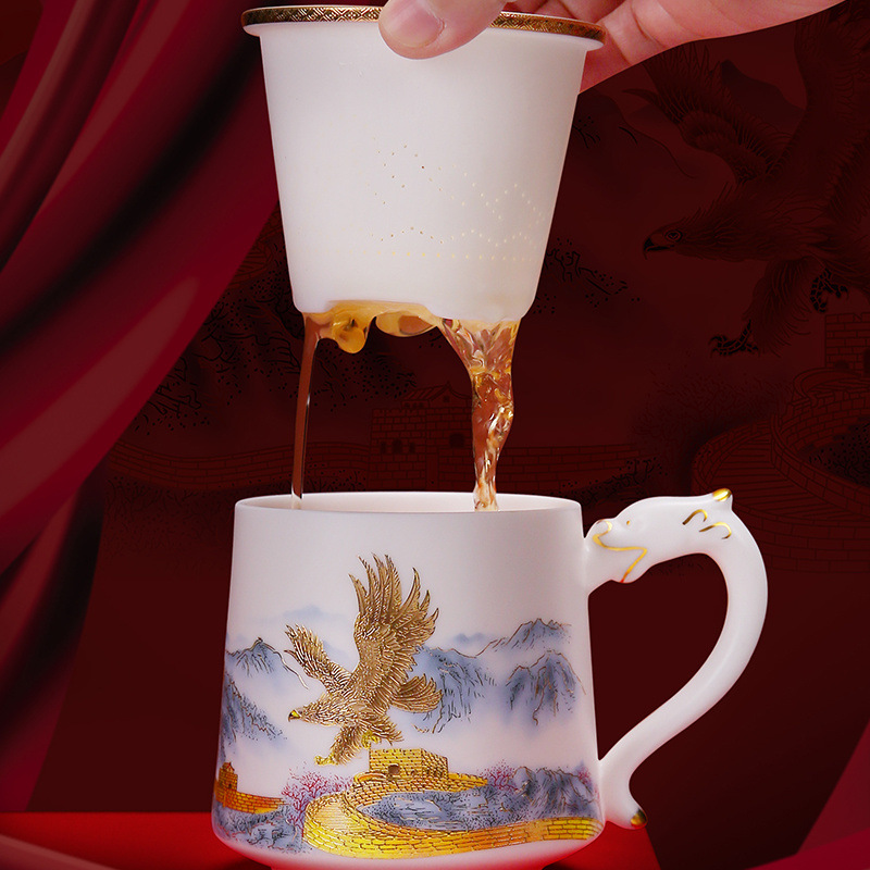 Легкая роскошная высококачественная чашка для воды из белого нефритового фарфора с крышкой, офисная чашка с фильтром, кружка для разделения чайной воды, чашка для заваривания чая.