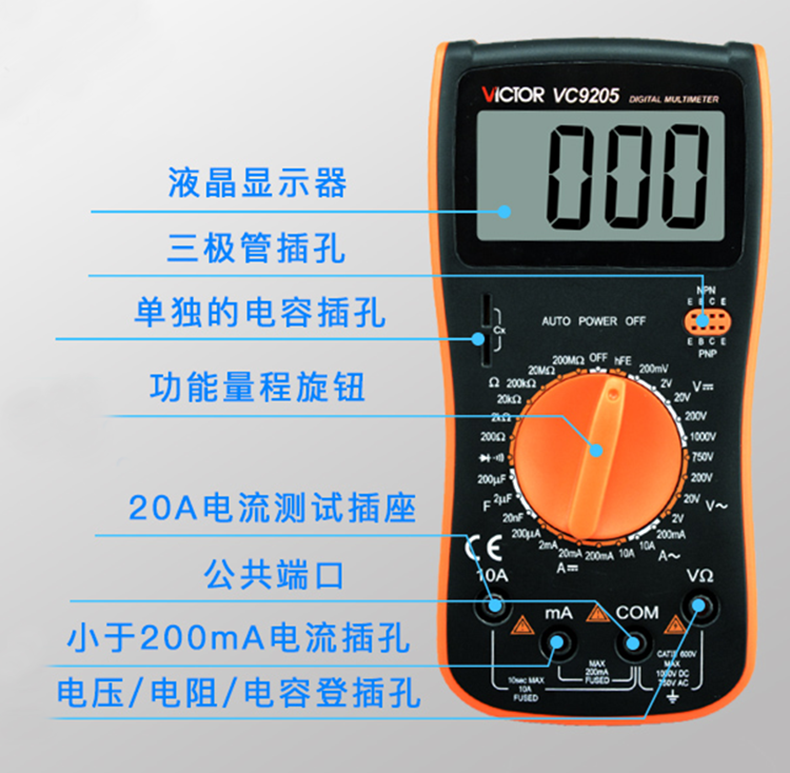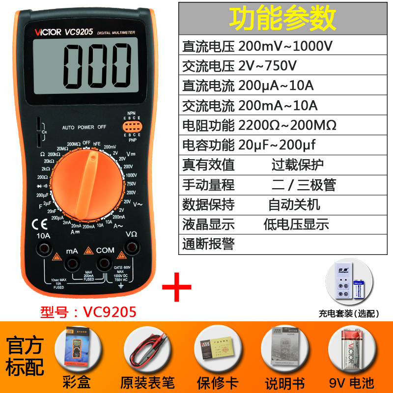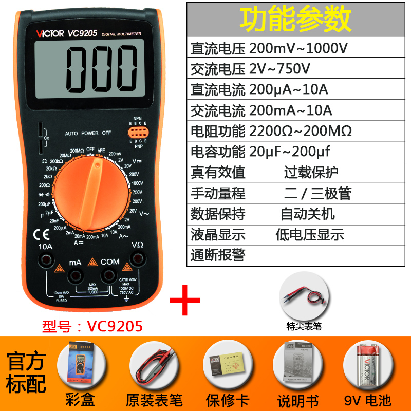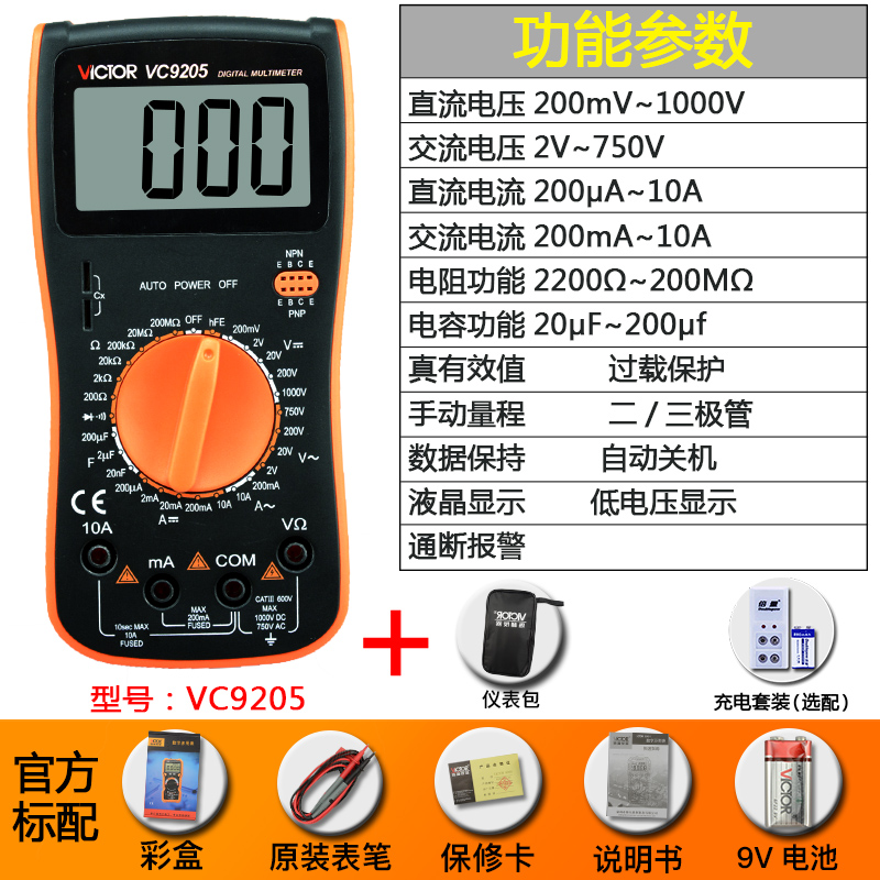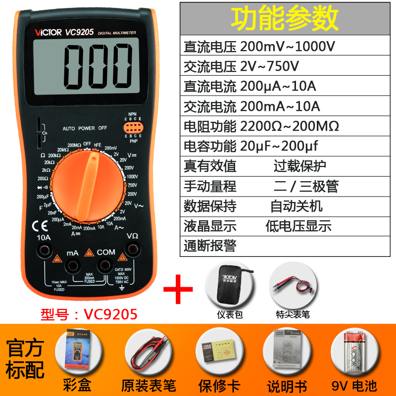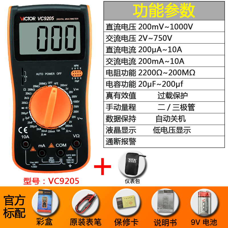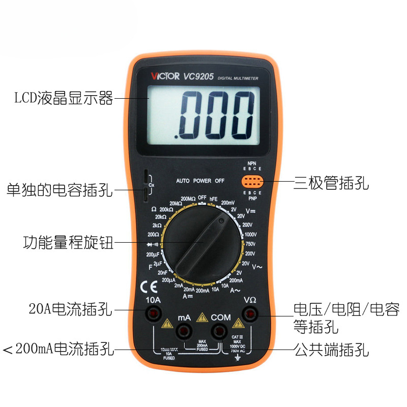 Цифровой мультиметр VC9205 Высокоточный цифровой дисплей с полной защитой Мини-мультиметр для домашнего электрика