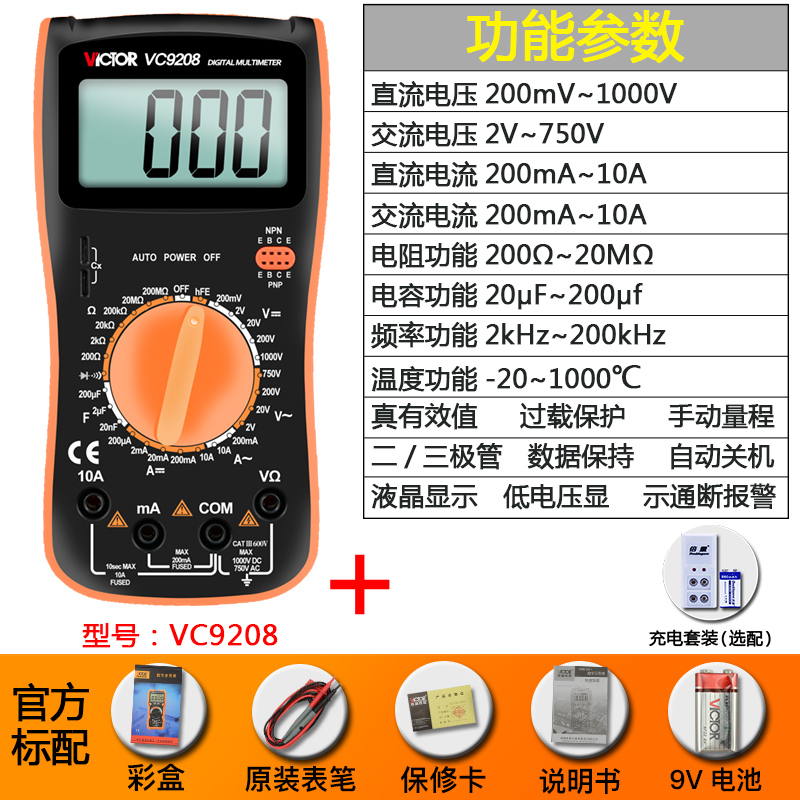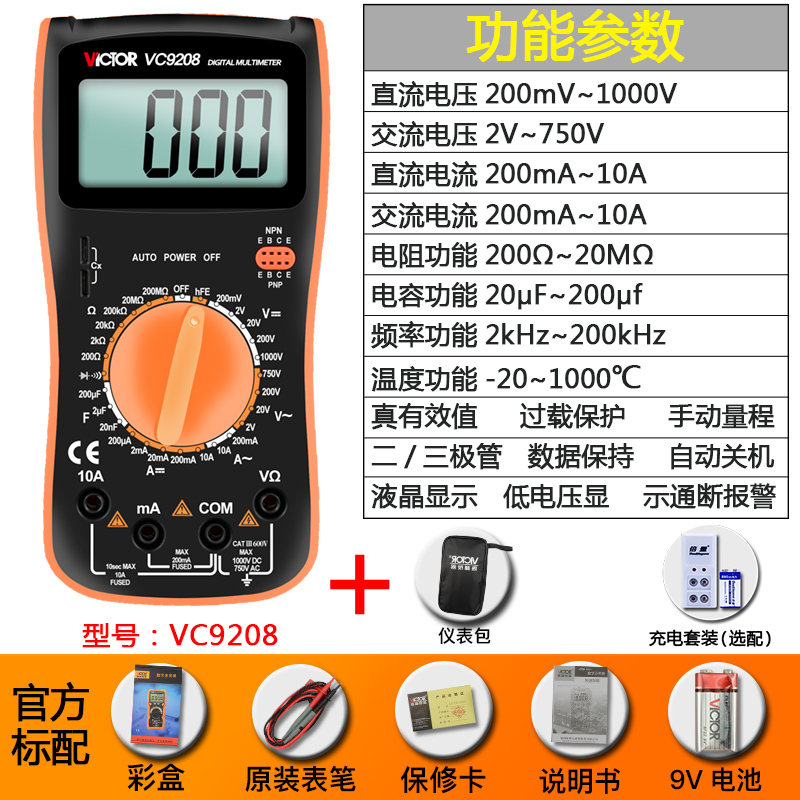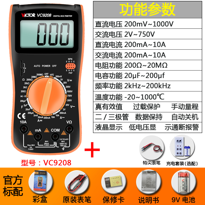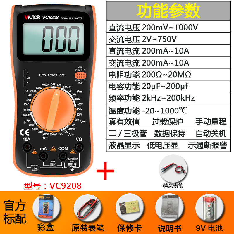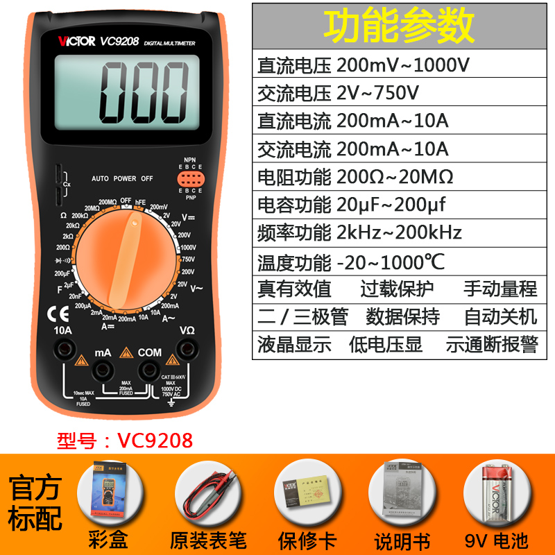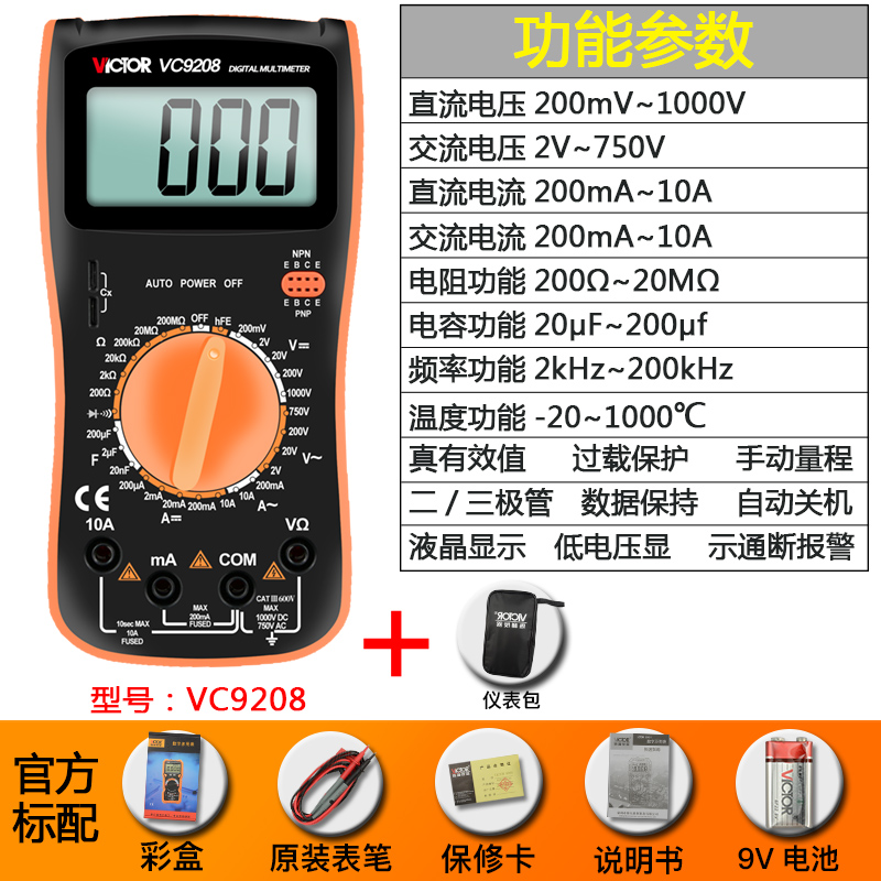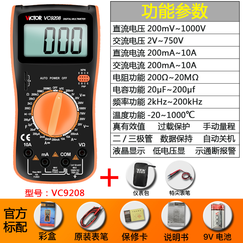 Цифровой мультиметр VC9205 Высокоточный цифровой дисплей с полной защитой Мини-мультиметр для домашнего электрика
