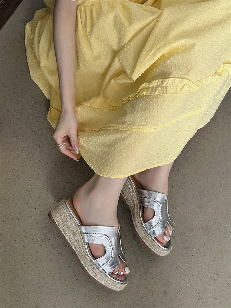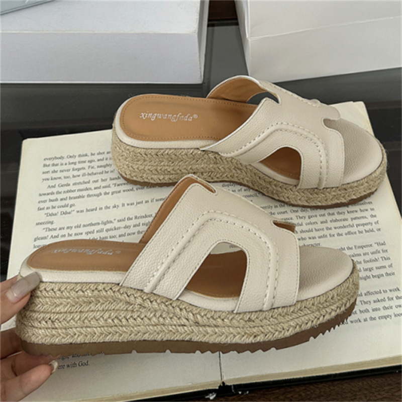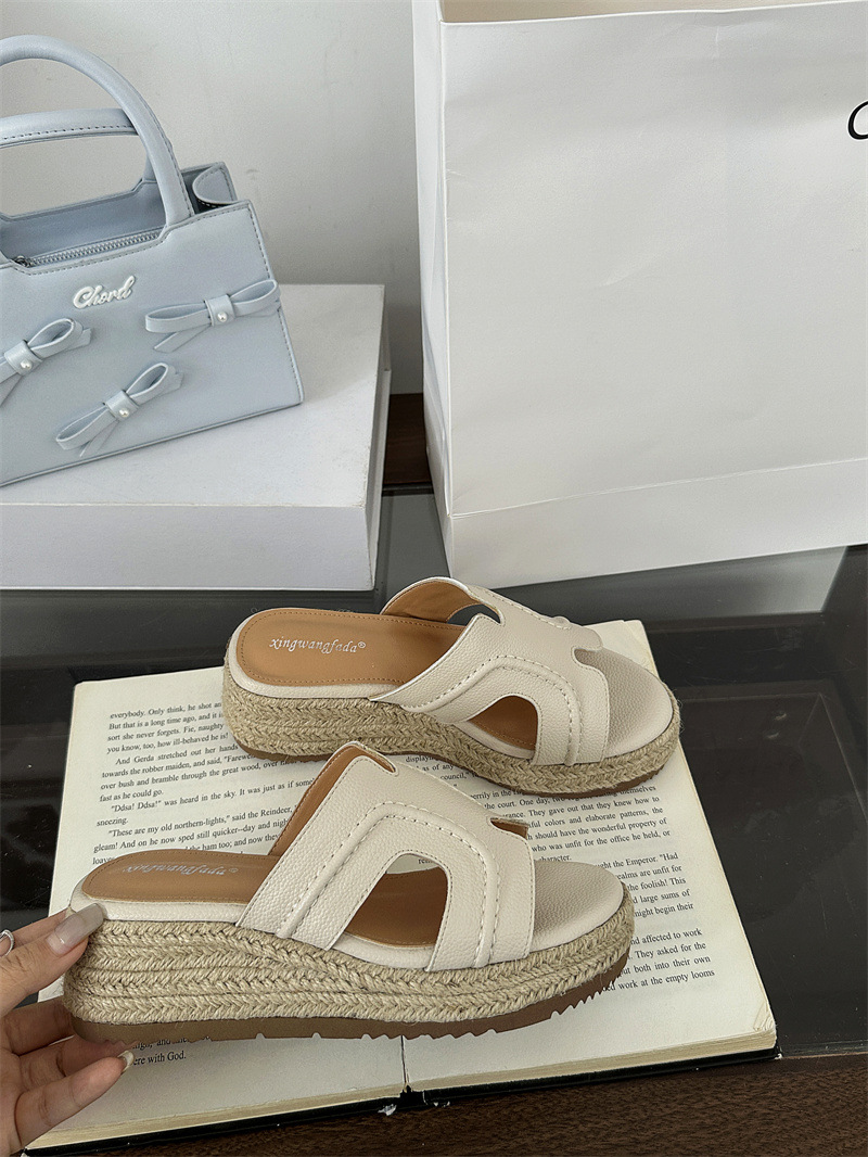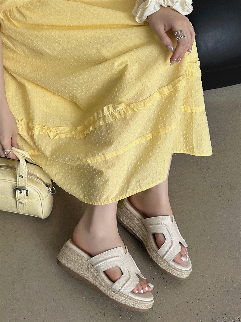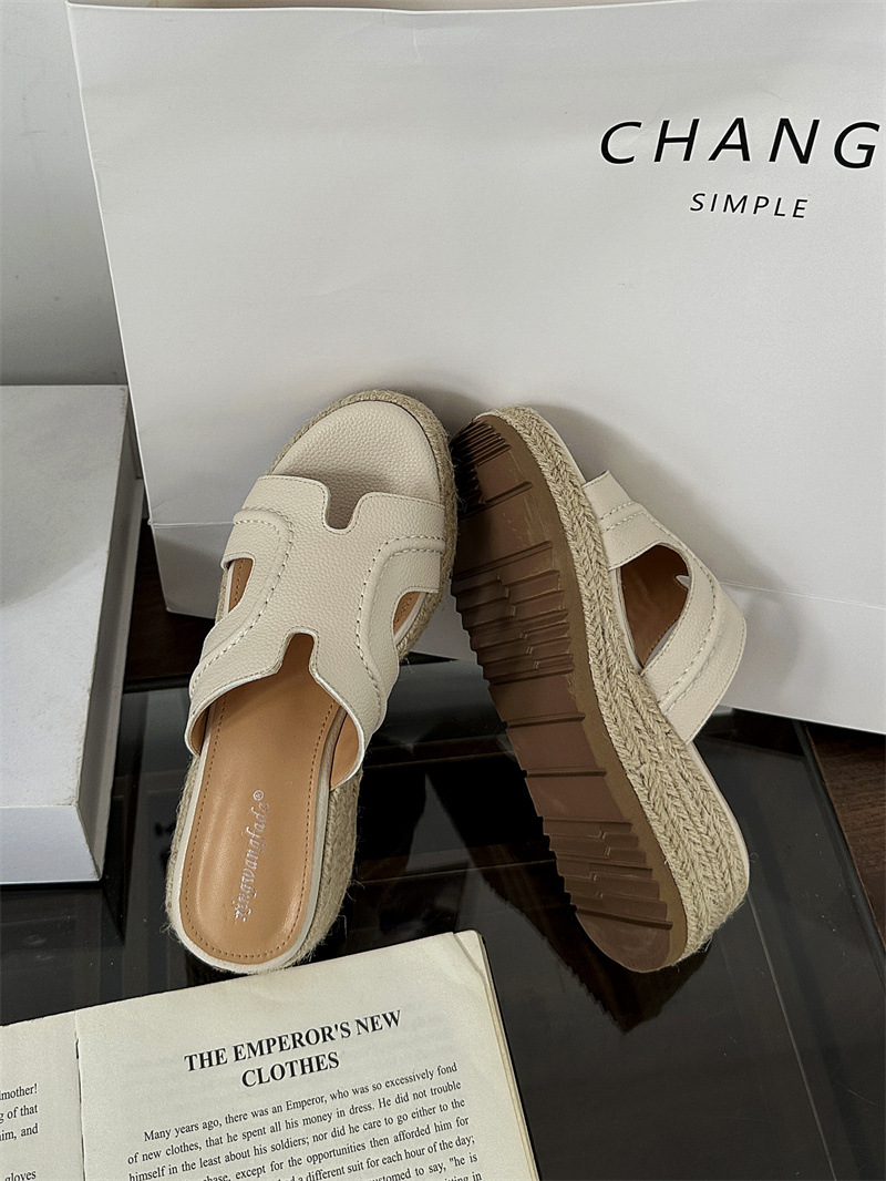 Версия из овчины! Тот же стиль, что и Zhao Lusi ~ Однотонные женские сандалии, летняя верхняя одежда, соломенные туфли на платформе, босоножки на высоком каблуке на толстой подошве.