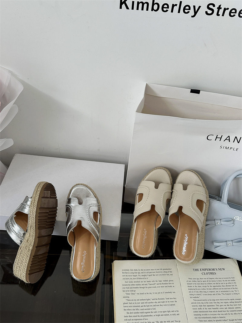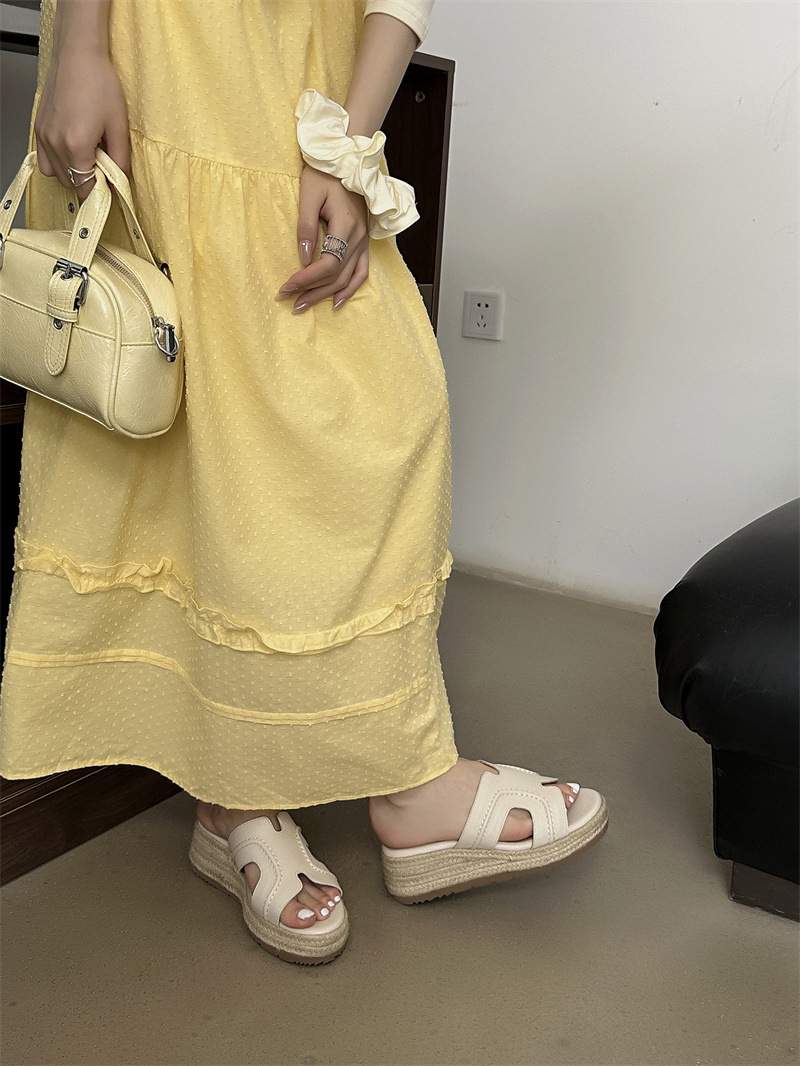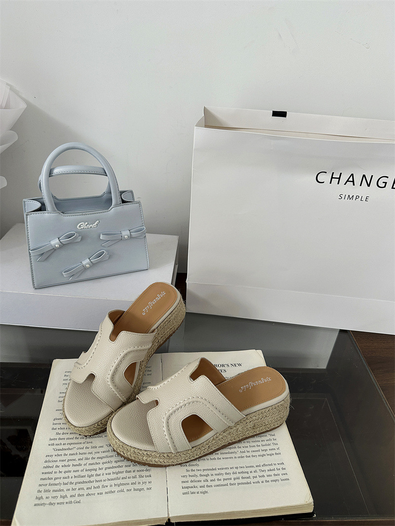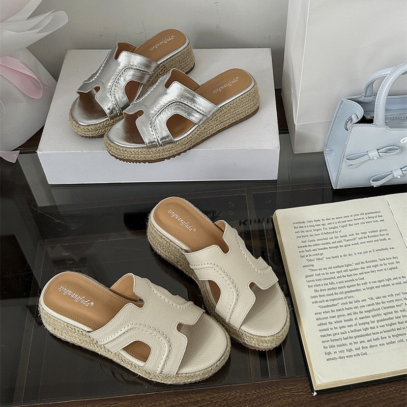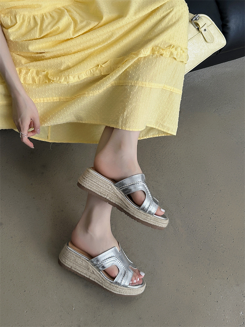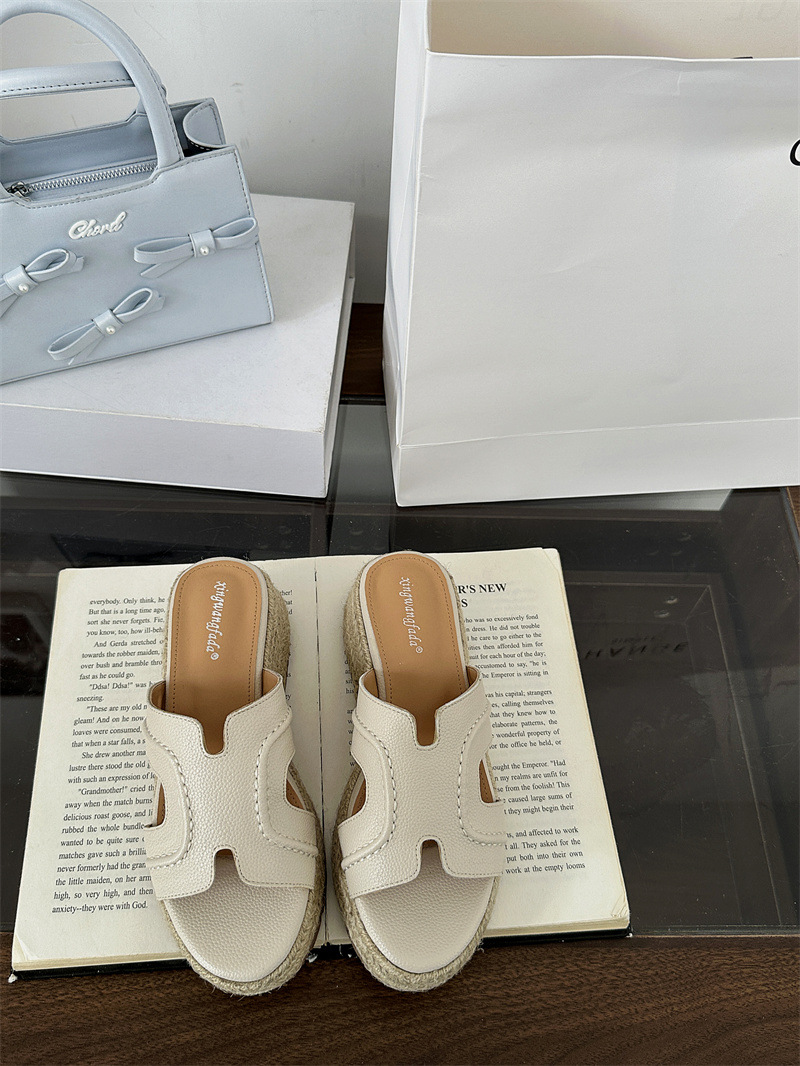 Версия из овчины! Тот же стиль, что и Zhao Lusi ~ Однотонные женские сандалии, летняя верхняя одежда, соломенные туфли на платформе, босоножки на высоком каблуке на толстой подошве.