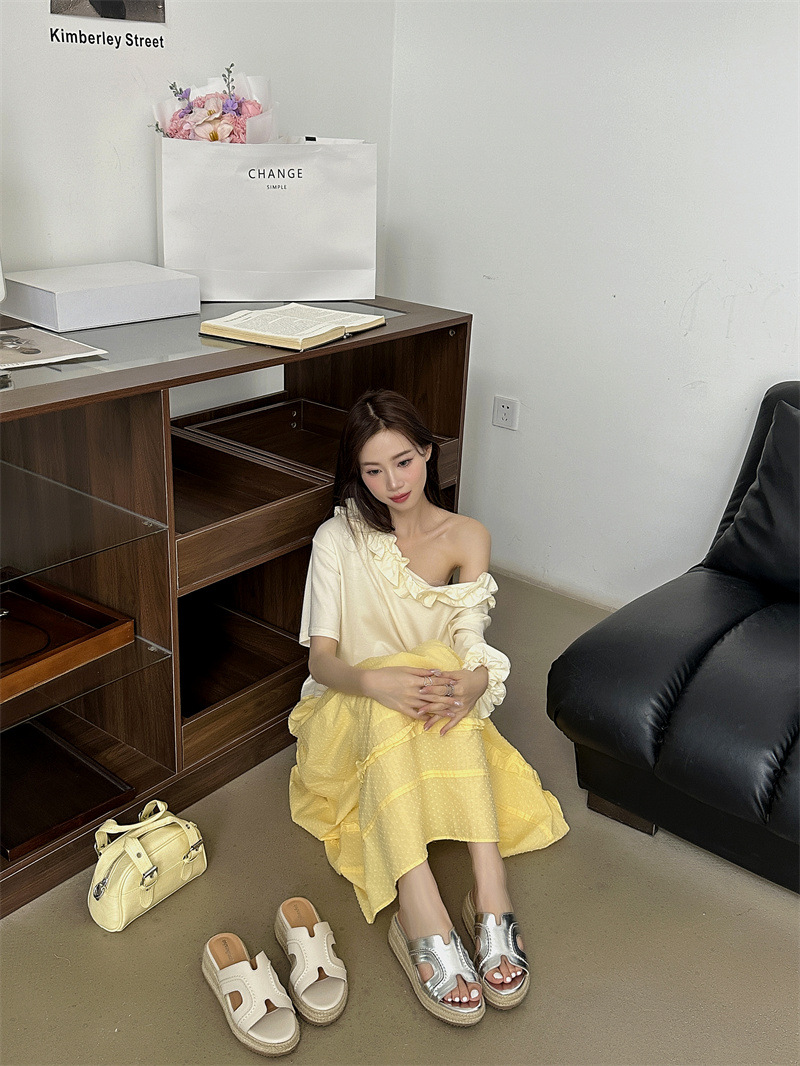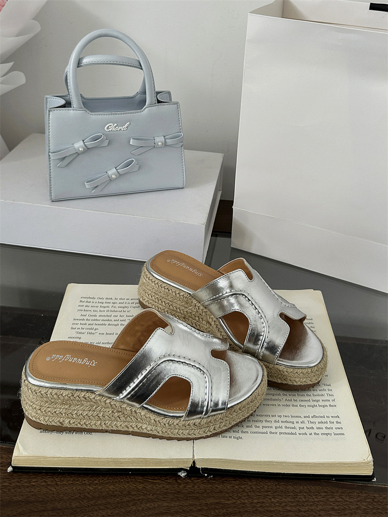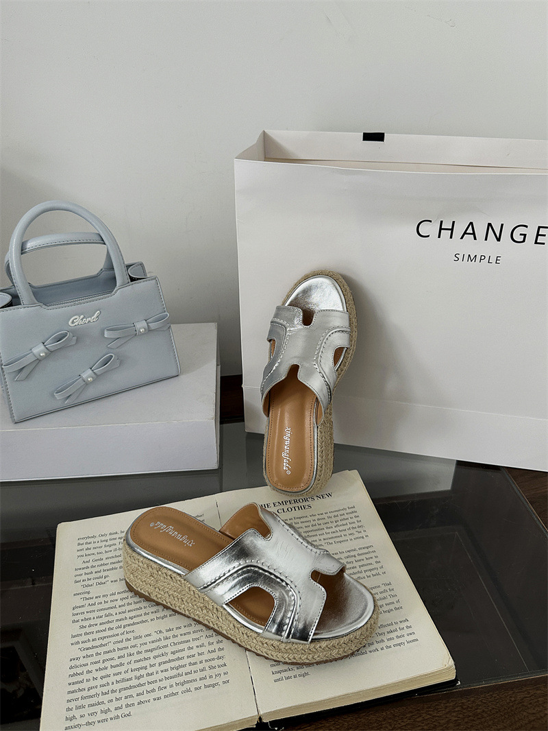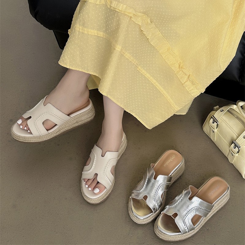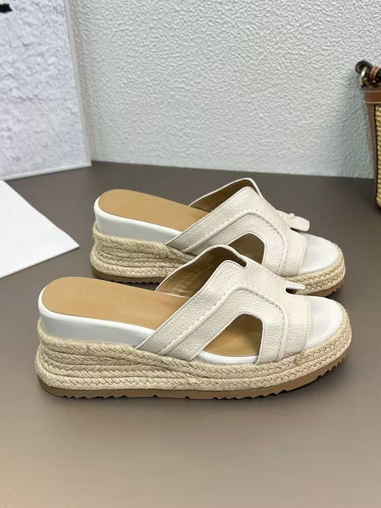 Версия из овчины! Тот же стиль, что и Zhao Lusi ~ Однотонные женские сандалии, летняя верхняя одежда, соломенные туфли на платформе, босоножки на высоком каблуке на толстой подошве.