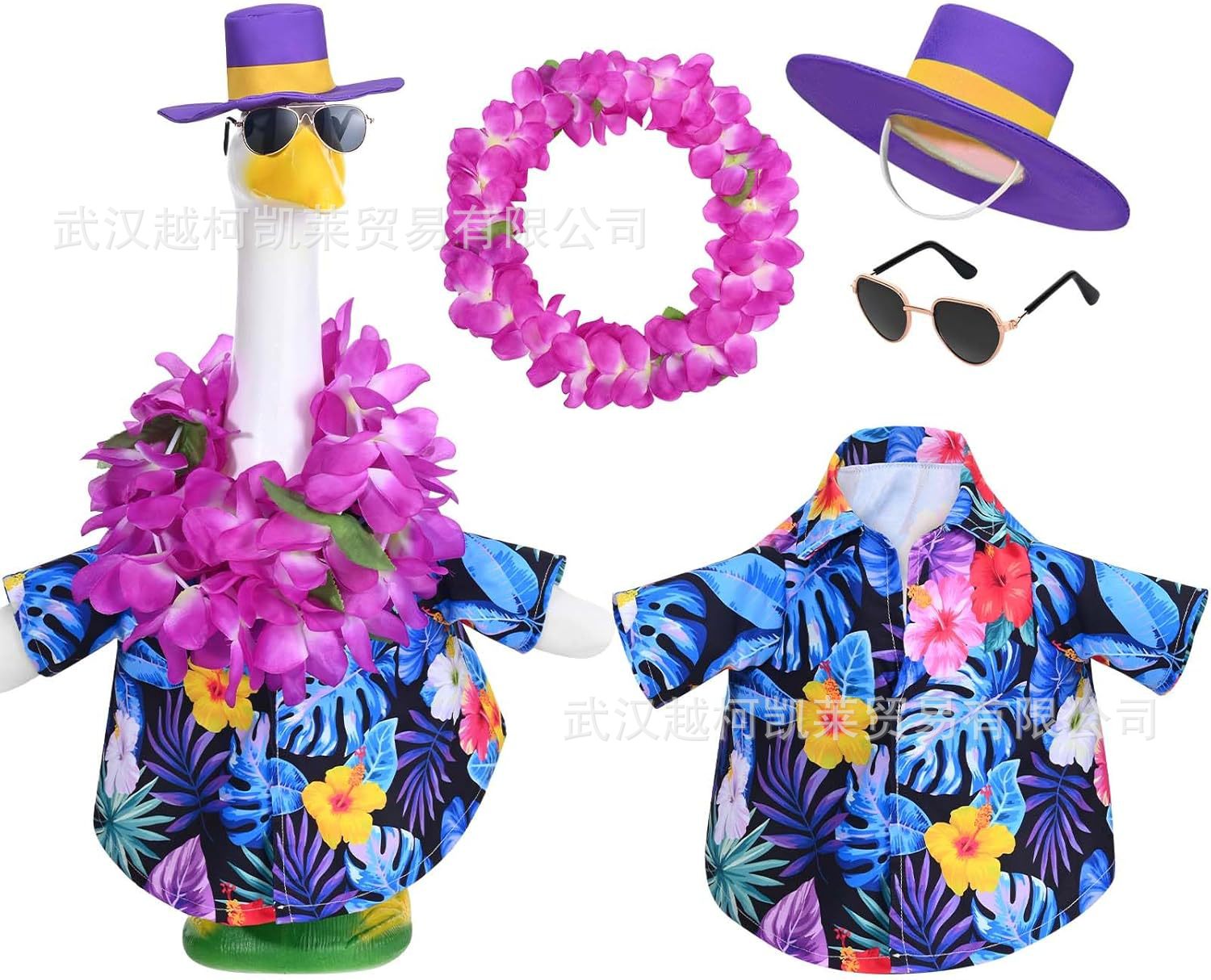 Гавайский наряд для гуся на крыльце, летняя одежда со статуей гуся, подходит для украшения газона из цемента и пластика 23inch года.