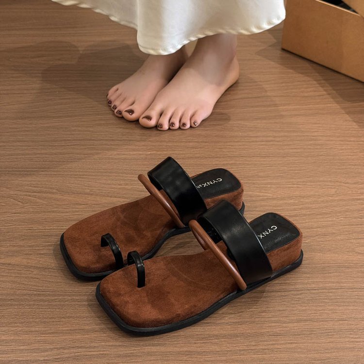 Женские пляжные шлепанцы с толстой подошвой, летняя новинка 2025 года, повседневная обувь для отдыха на море