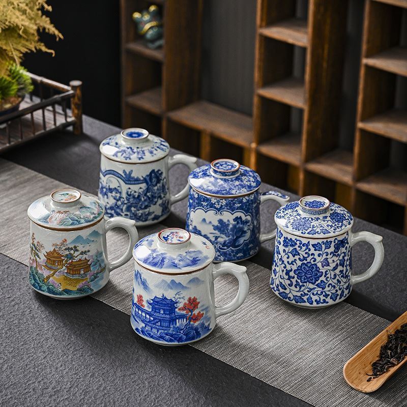 Синие и белые фарфоровые чайные чашки офисные чайные чашки чайные разделительные чайные чашки индивидуальные китайские винтажные чашки питьевой воды подарочные коробки